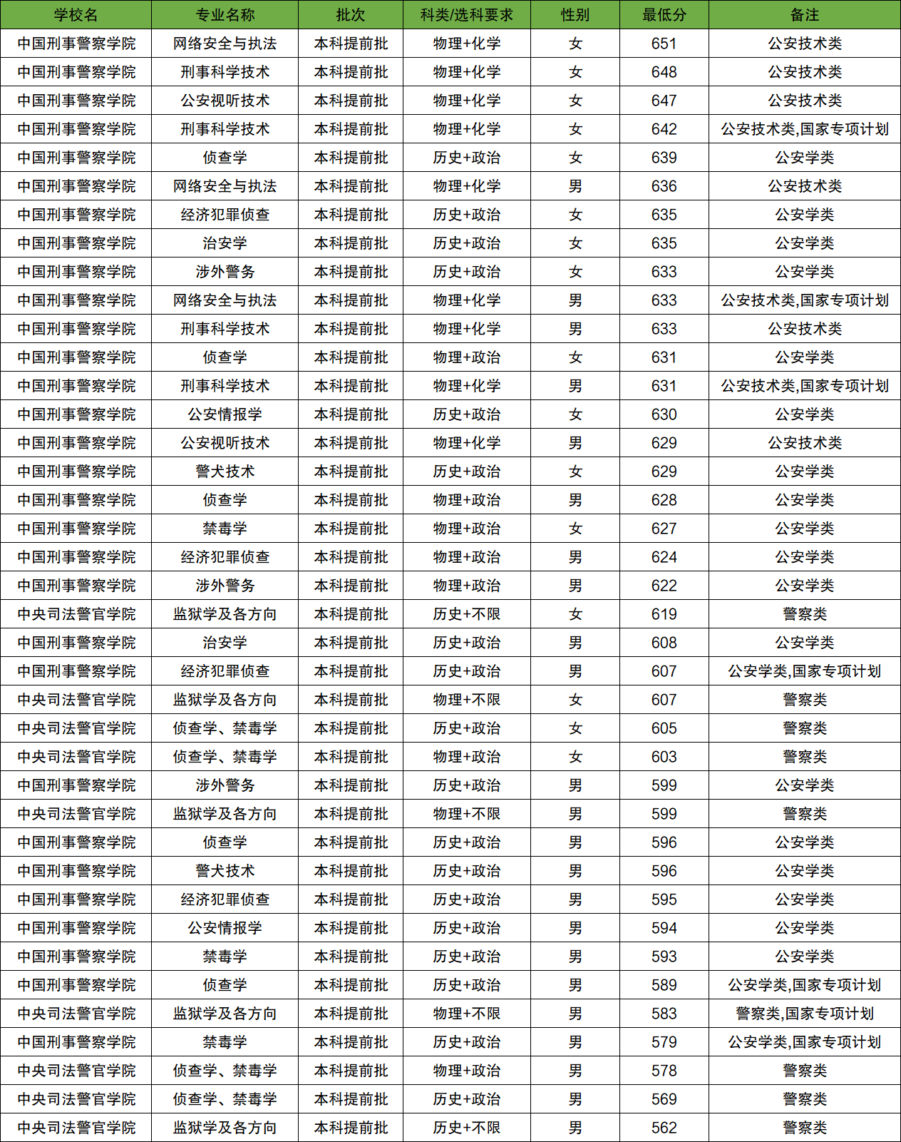 中央司法警官学院:历史类男生483分、女生554分,物理类男生499分、女生546分。