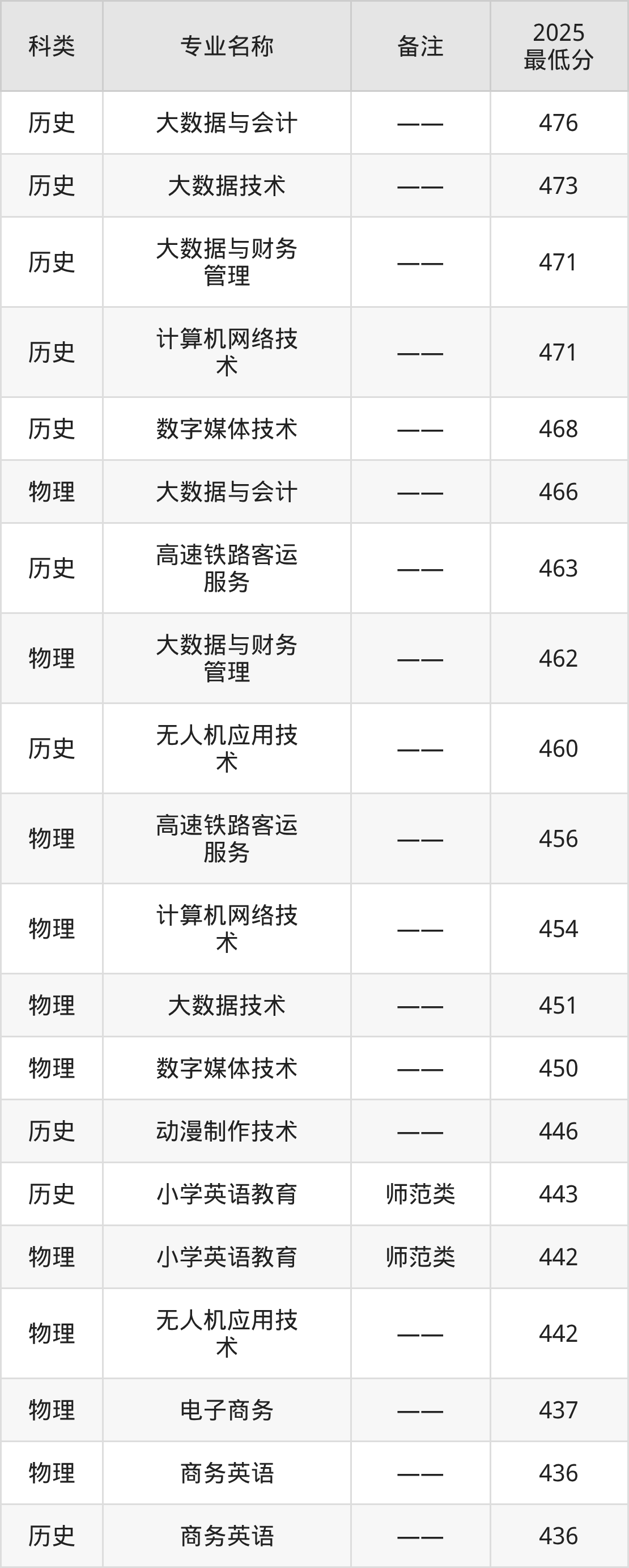 2、大数据技术:专业最低473分