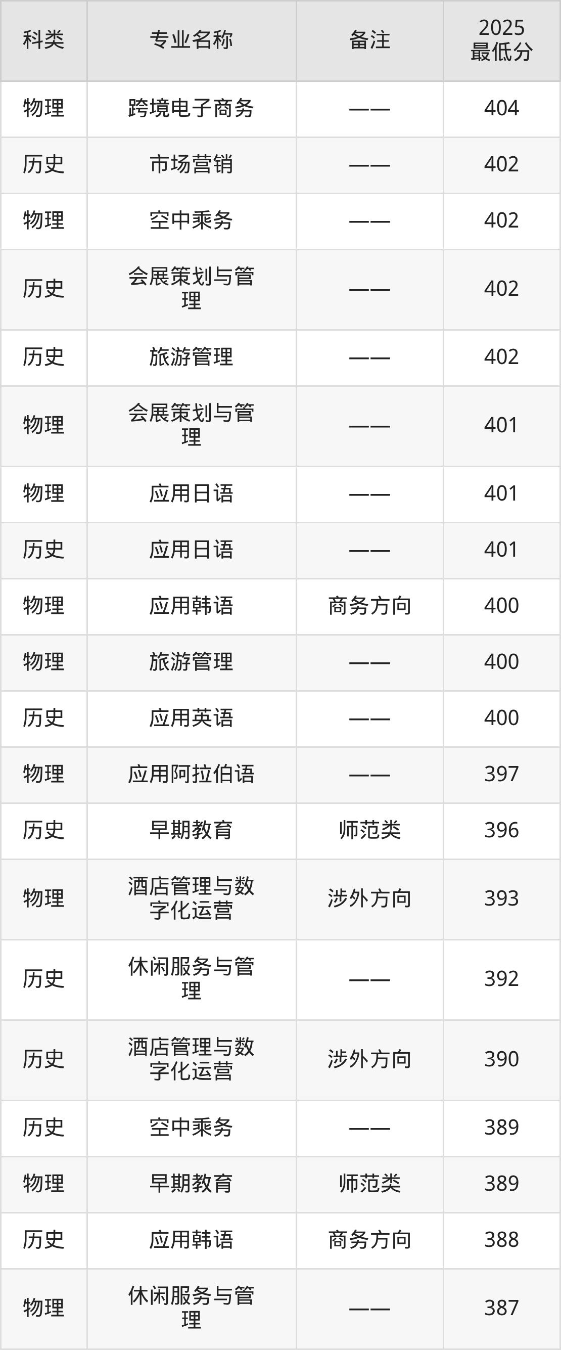 17、旅游管理:专业最低402分