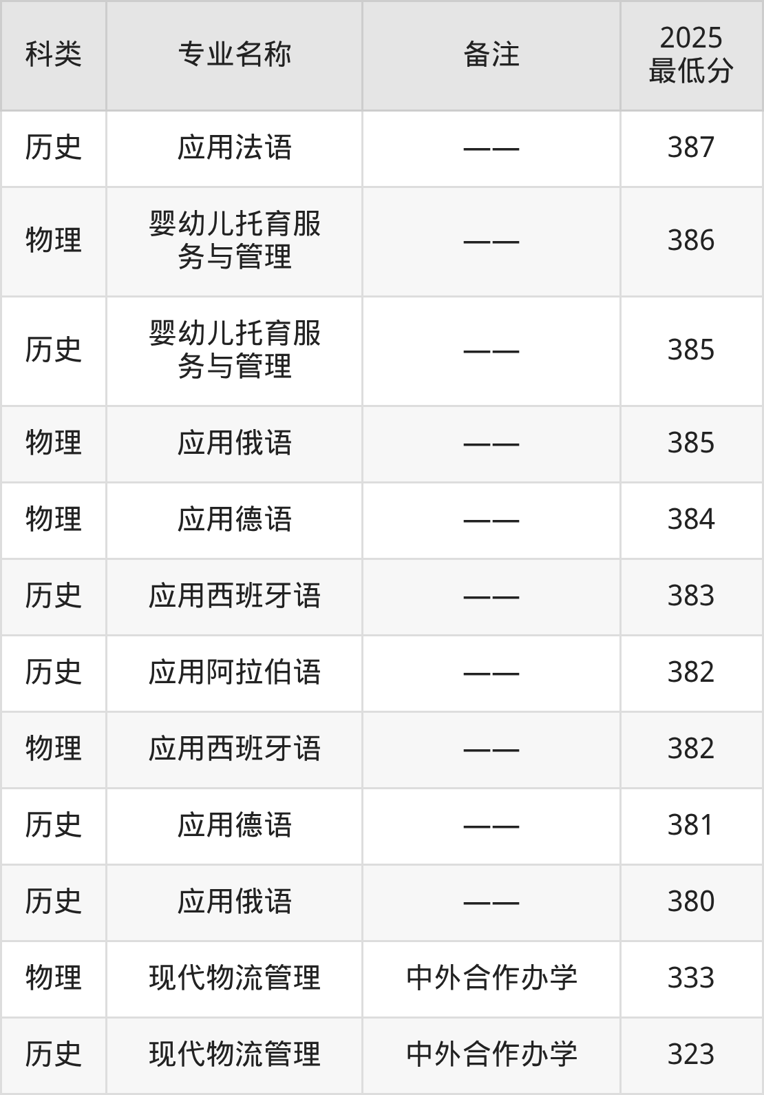 27、应用西班牙语:专业最低383分