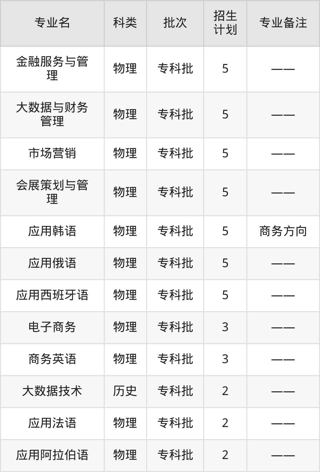 二、河北对外经贸职业学院2025招生计划表