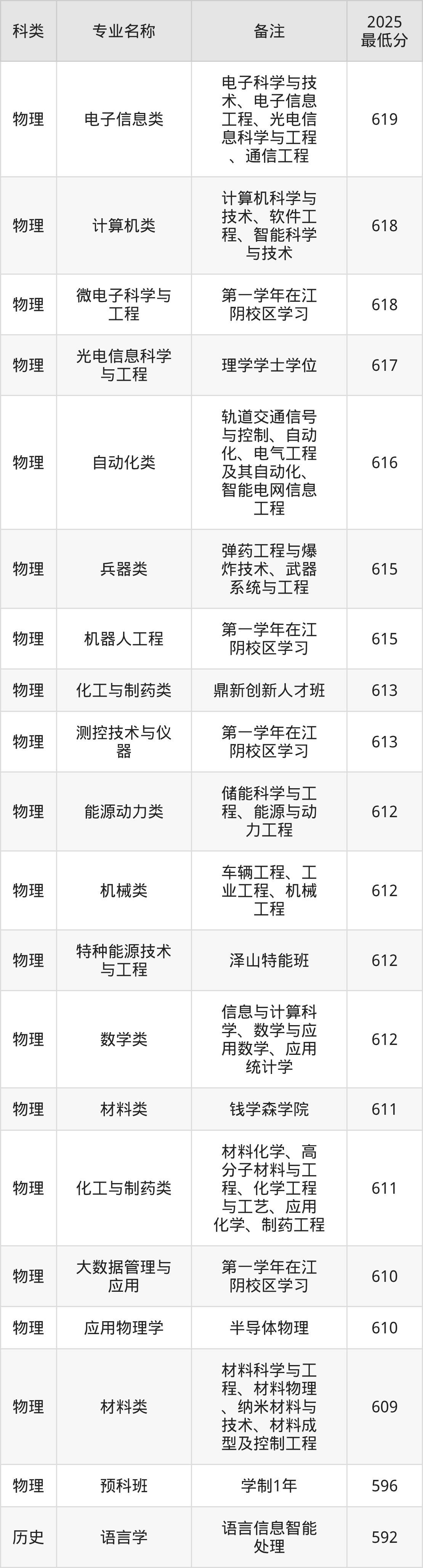 下面是根据2025南京理工大学各专业最低录取分数线排名(历史类):