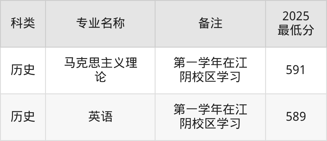 2、马克思主义理论(第一学年在江阴校区学习):专业最低591分