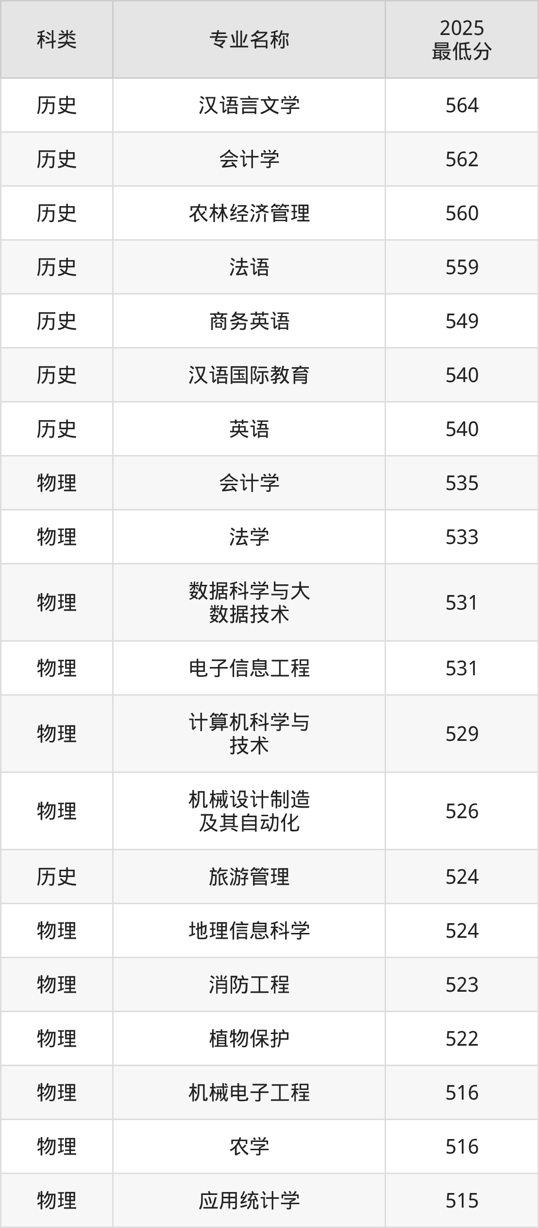 23、森林保护:专业最低494分