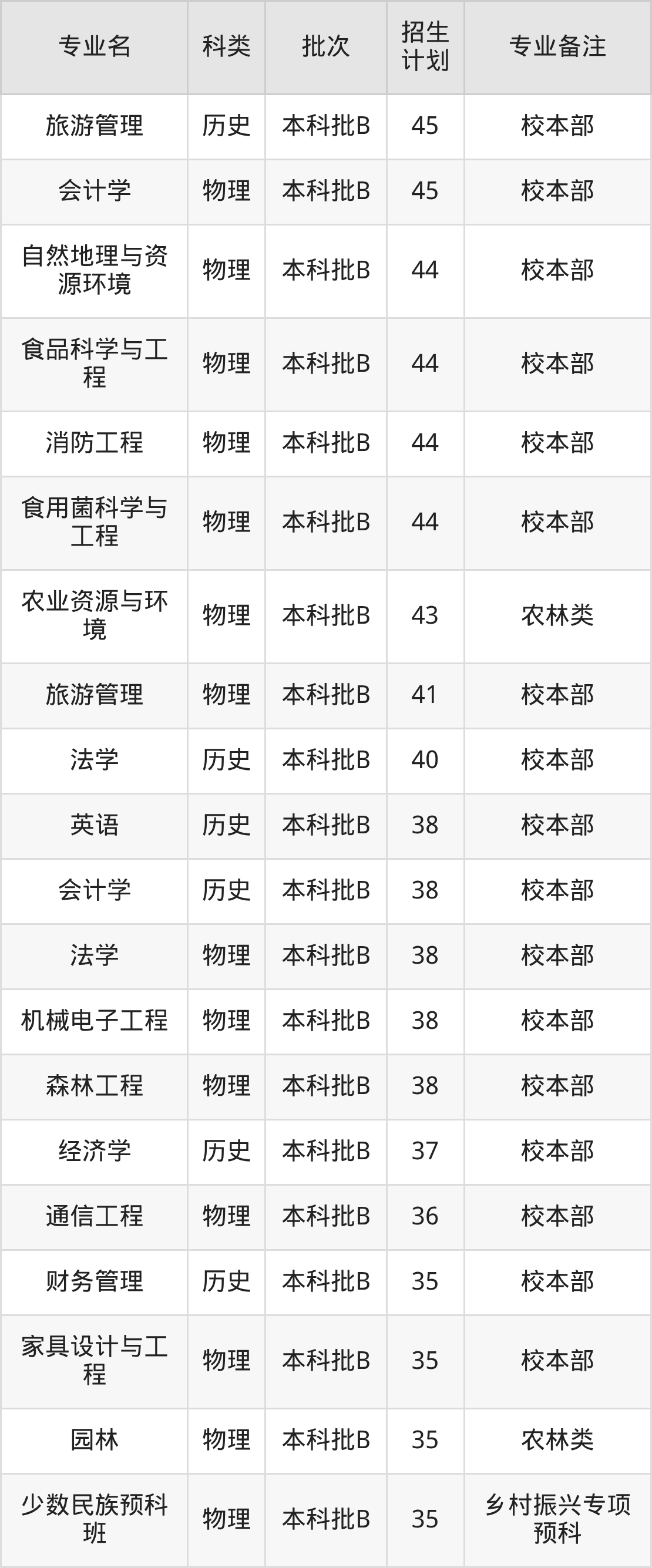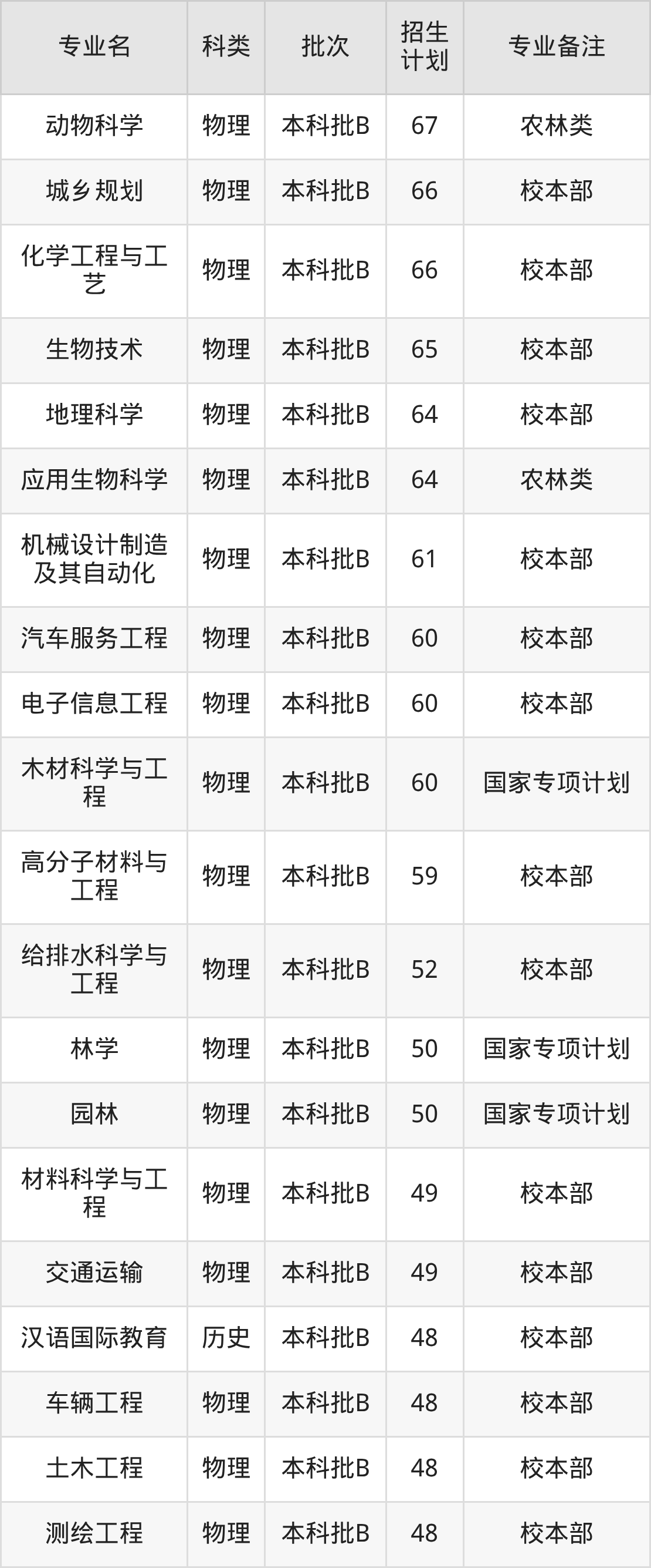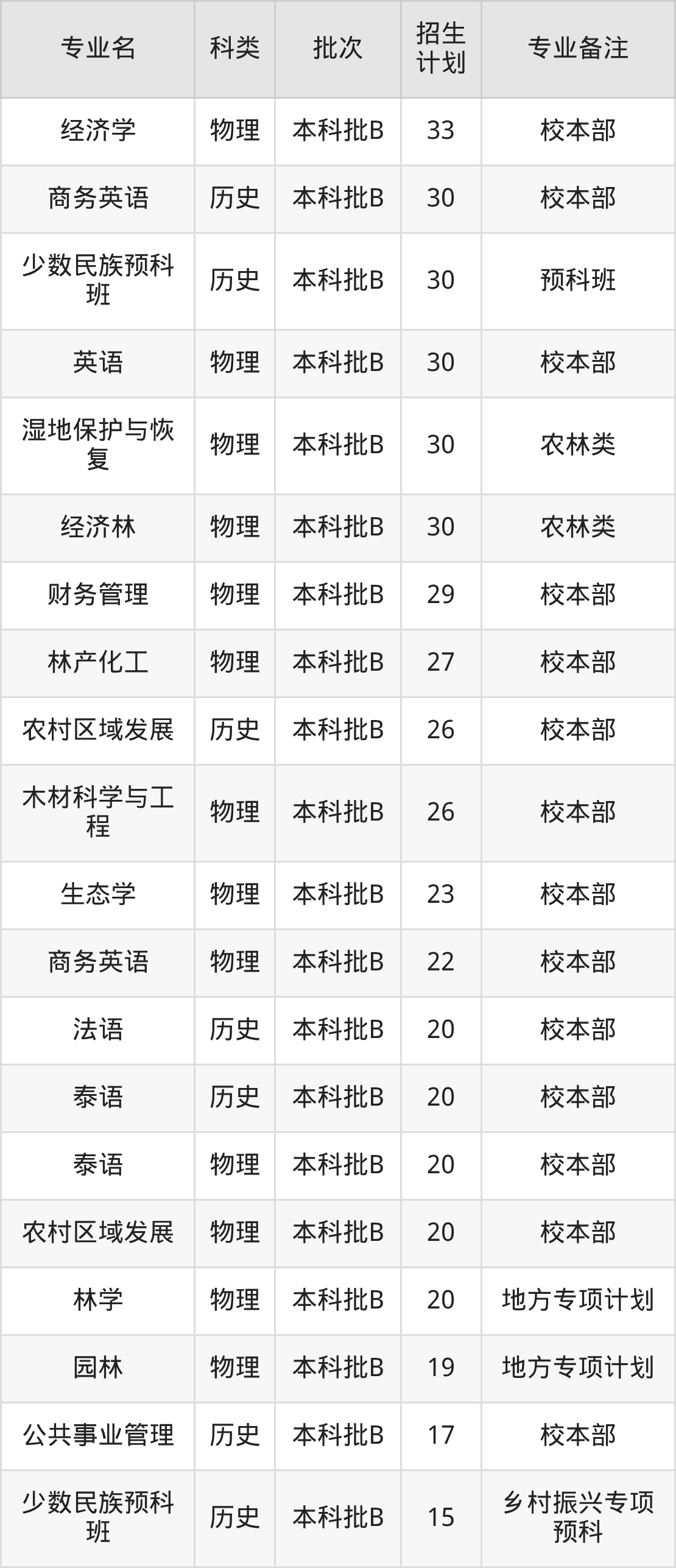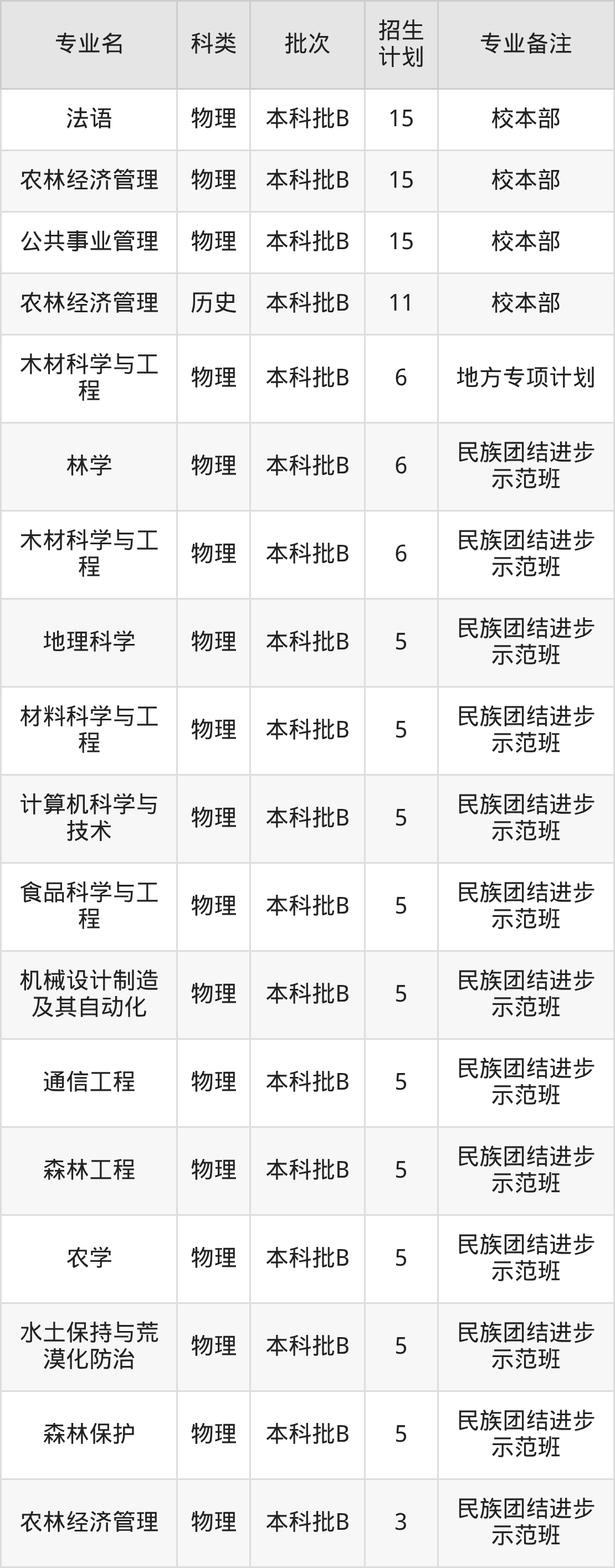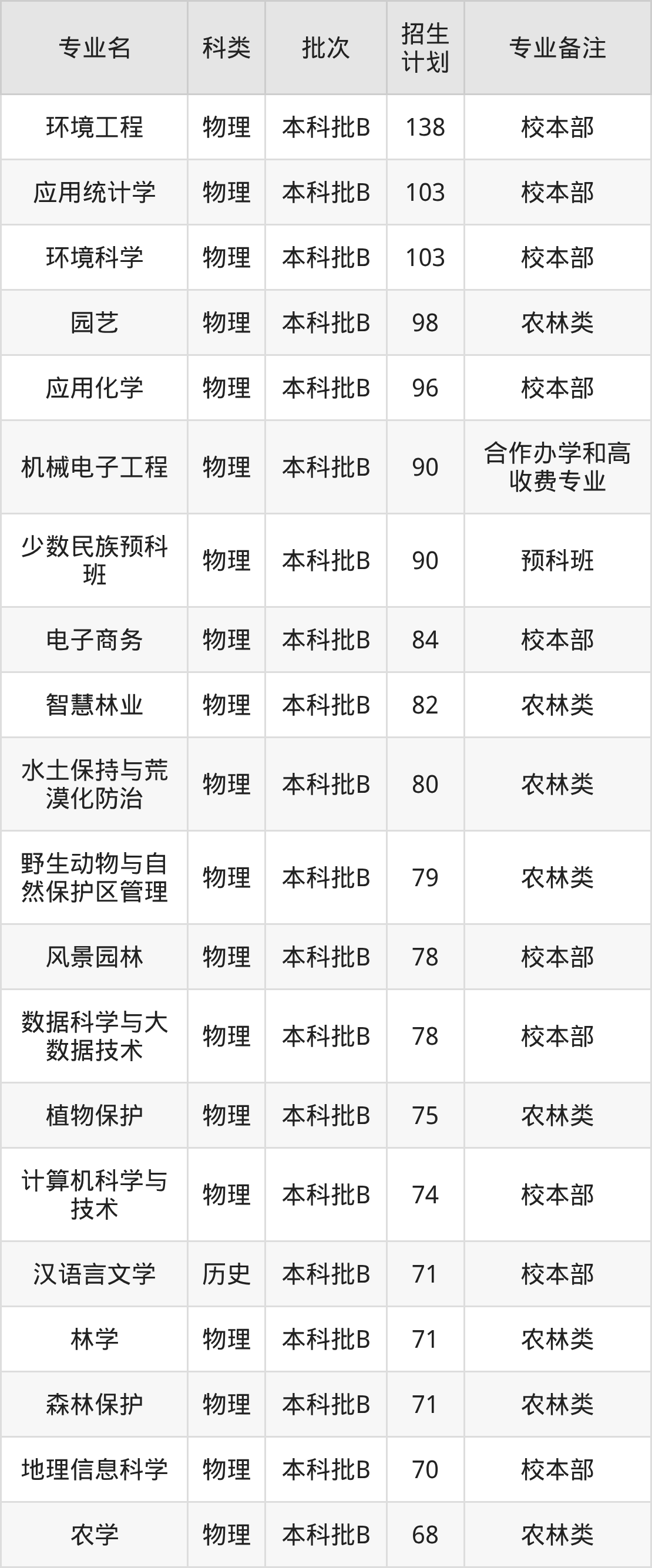 二、西南林业大学2025招生计划表
