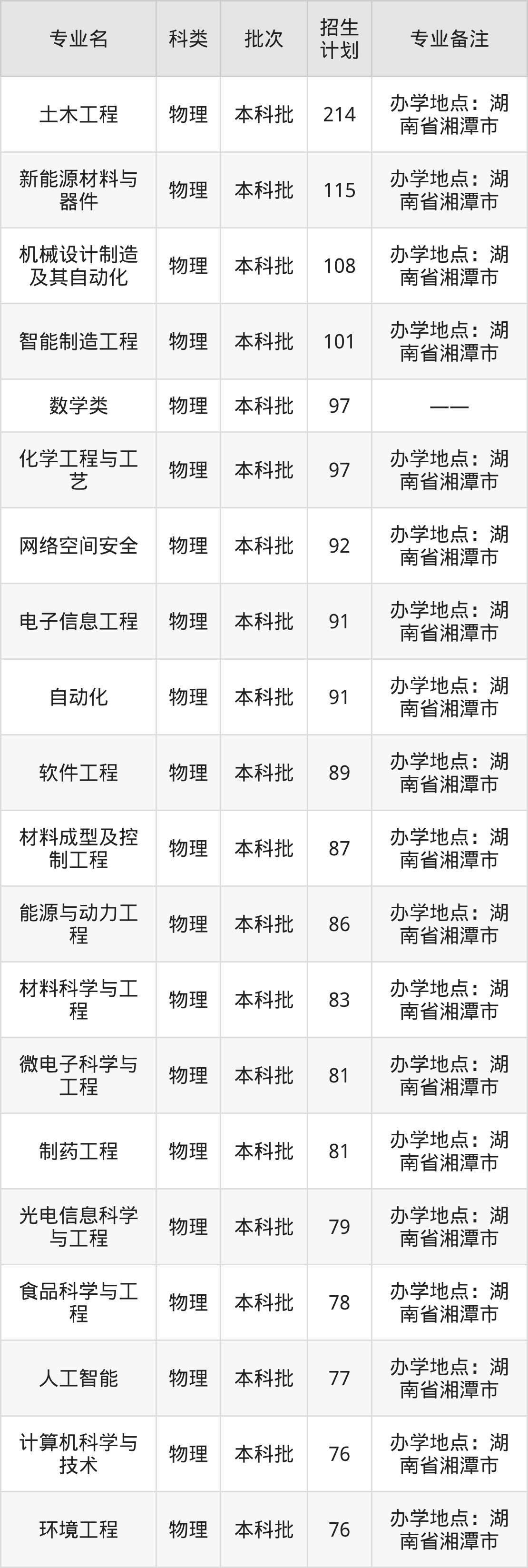以湖南省为例,2025湘潭大学在所在省份招生人数共计5156人,其中人数最多的专业为土木工程(办学地点:湖南省湘潭市),共计214人,该专业选科要求为必选物理+化学。一般来说,招生人数越多,专业低分录取的概率就越大,具体可参考当地最终录取数据。