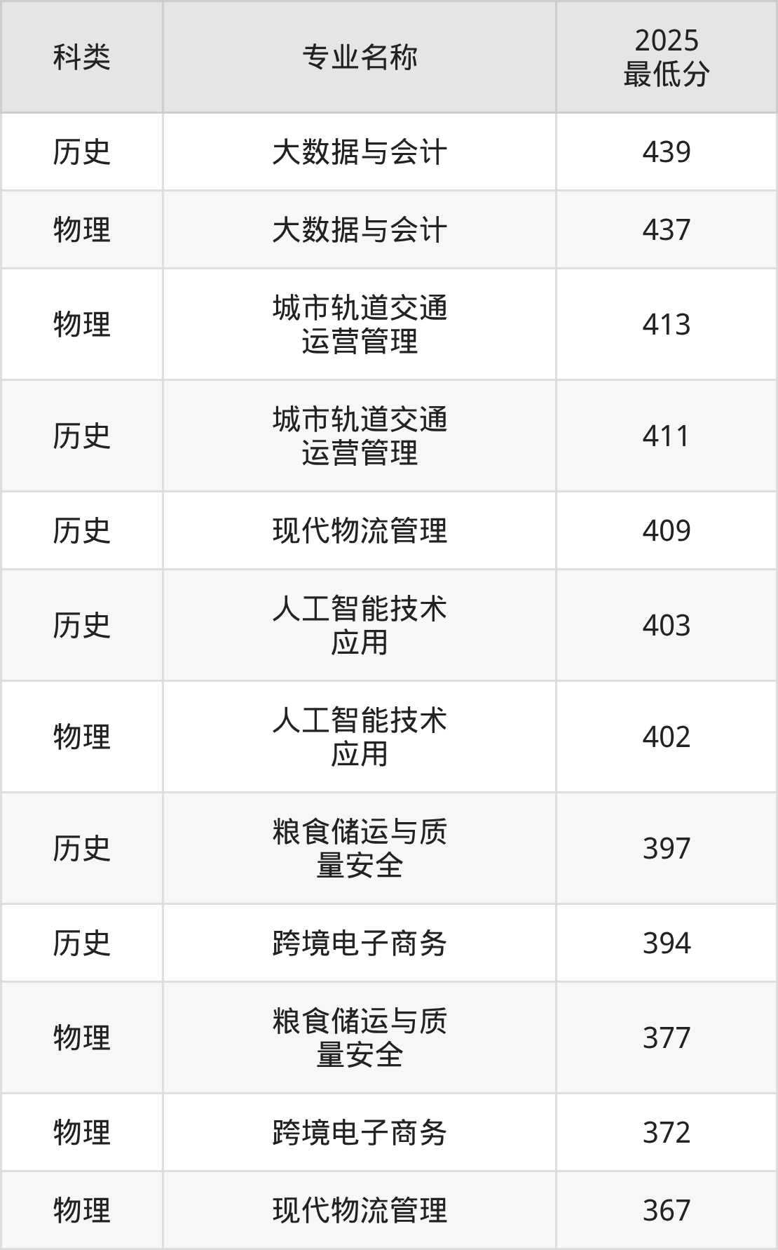 下面是根据2025甘肃财贸职业学院各专业最低录取分数线排名(物理类):