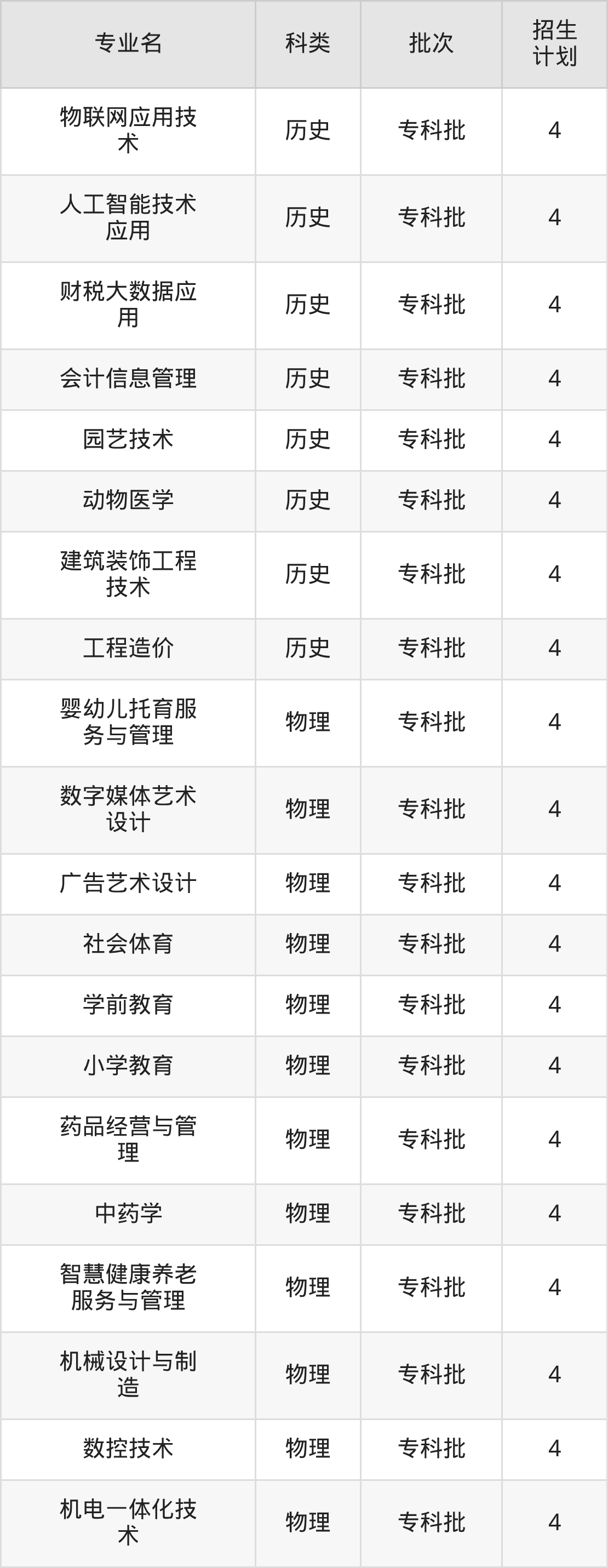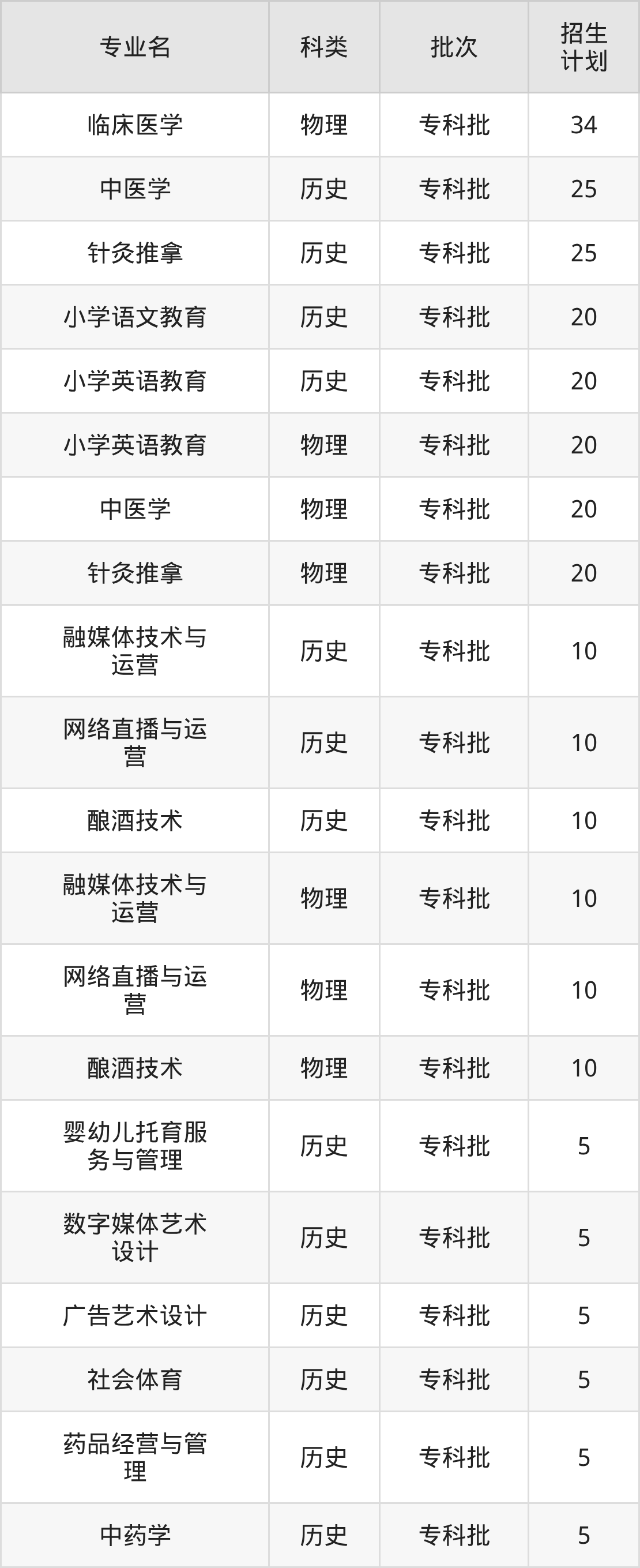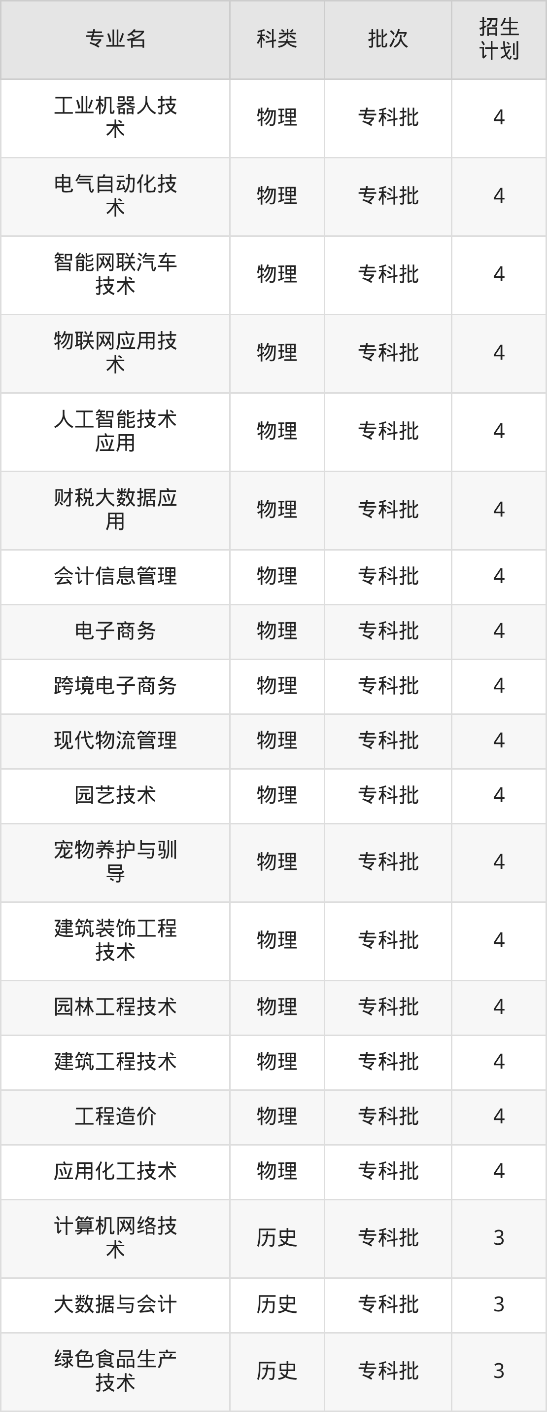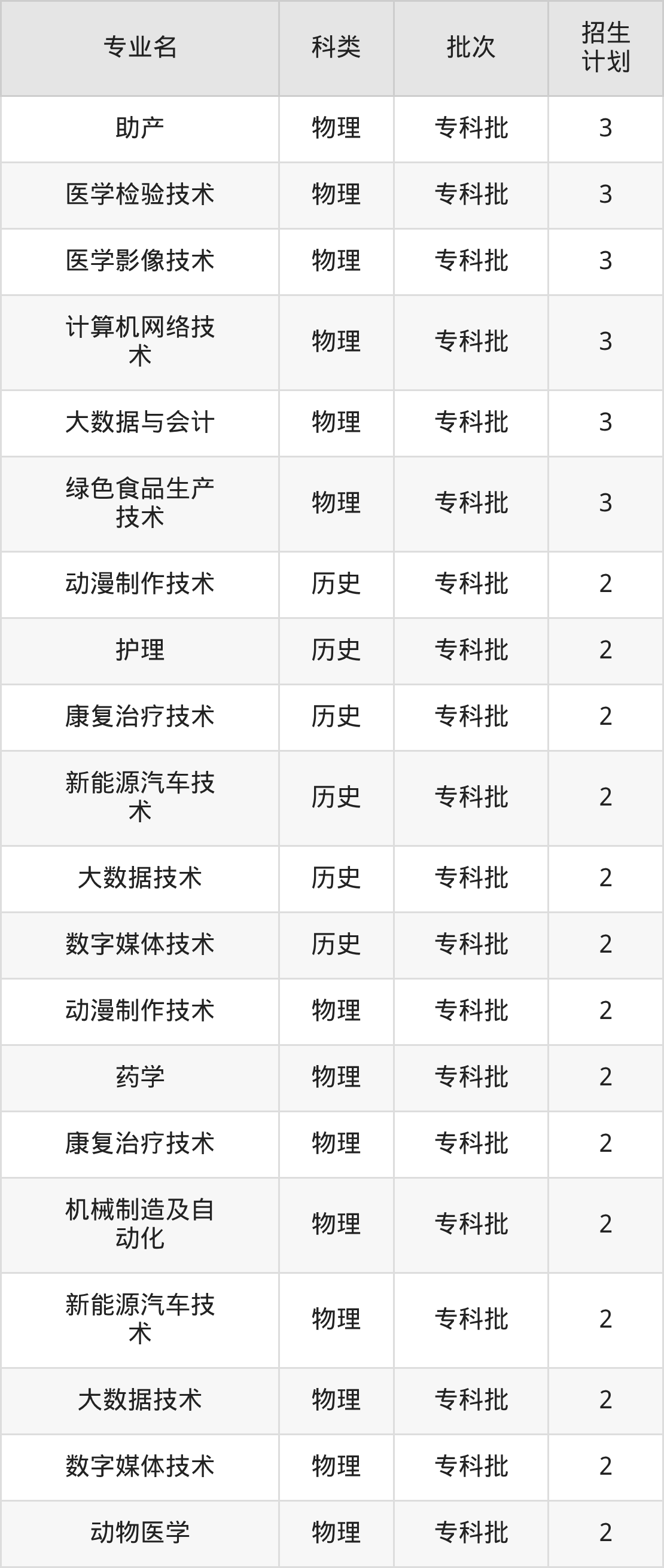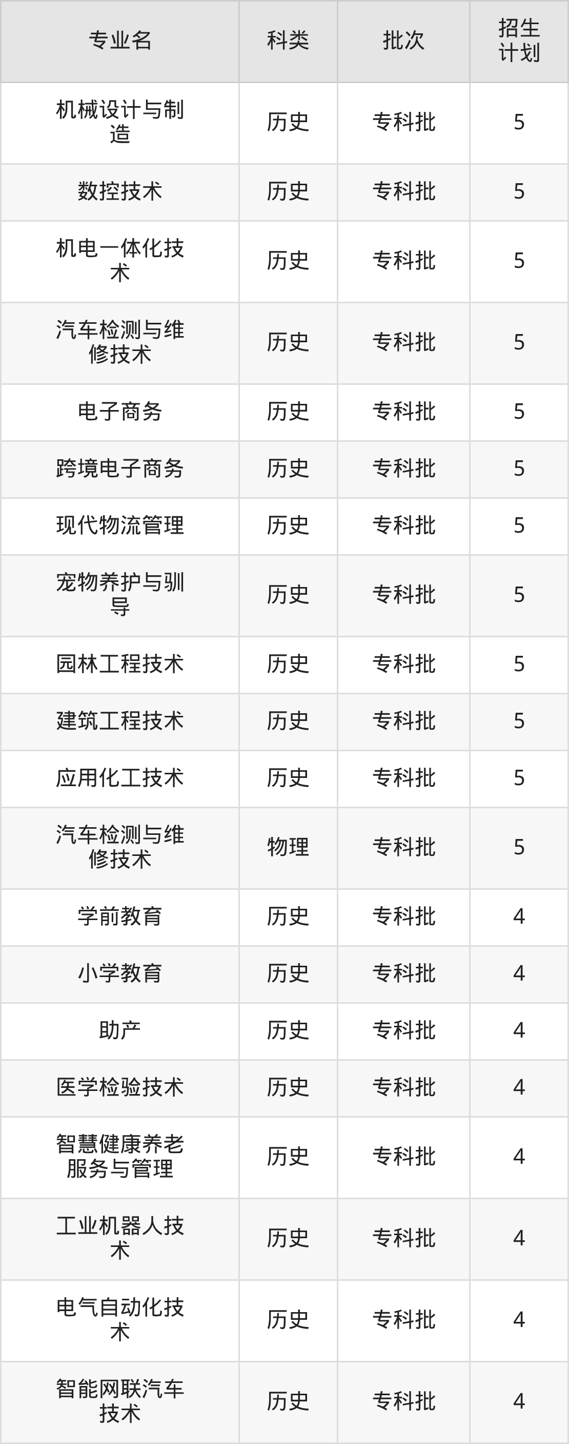 二、宝鸡职业技术学院2025招生计划表