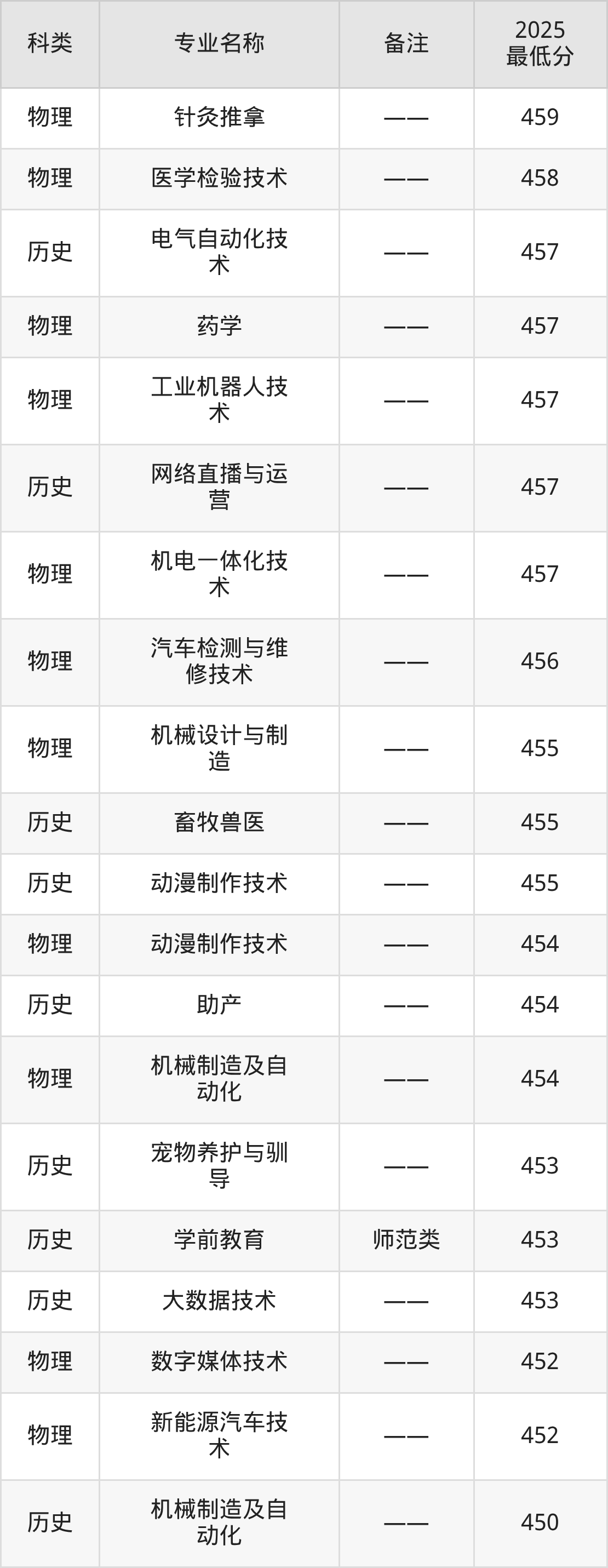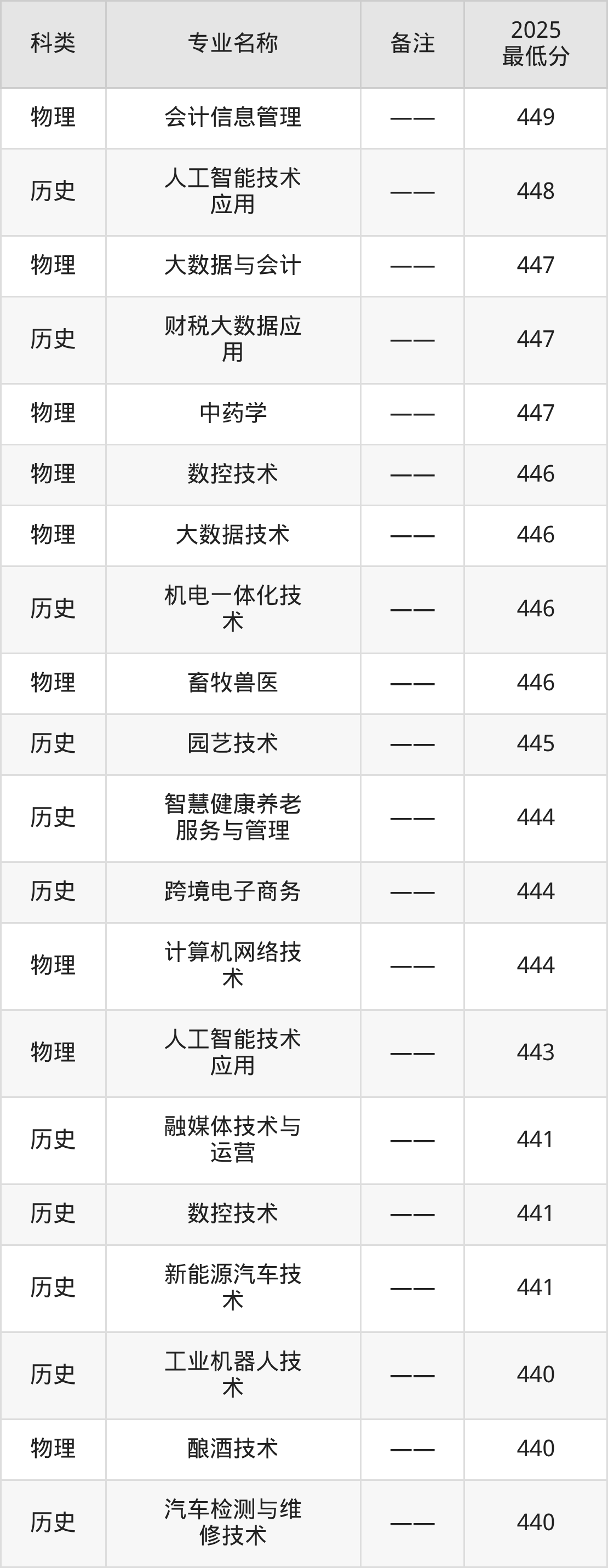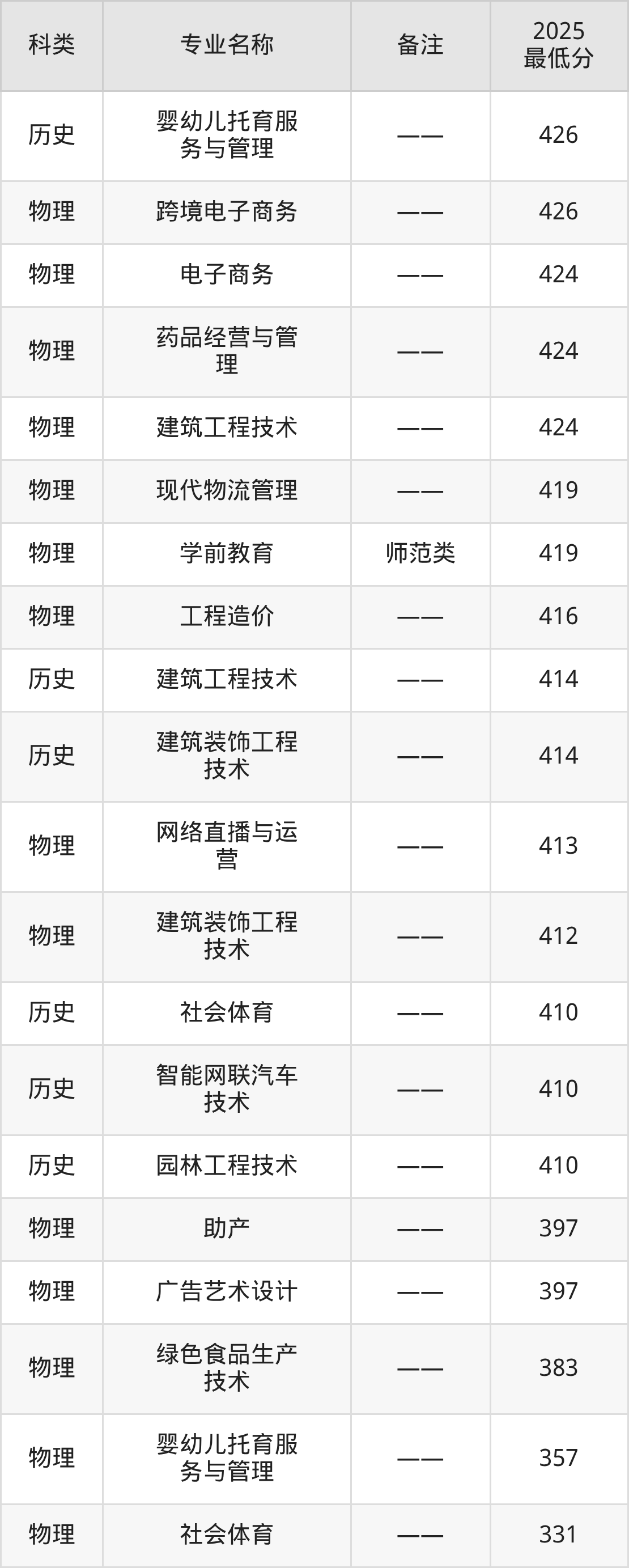 下面是根据2025宝鸡职业技术学院各专业最低录取分数线排名(物理类):