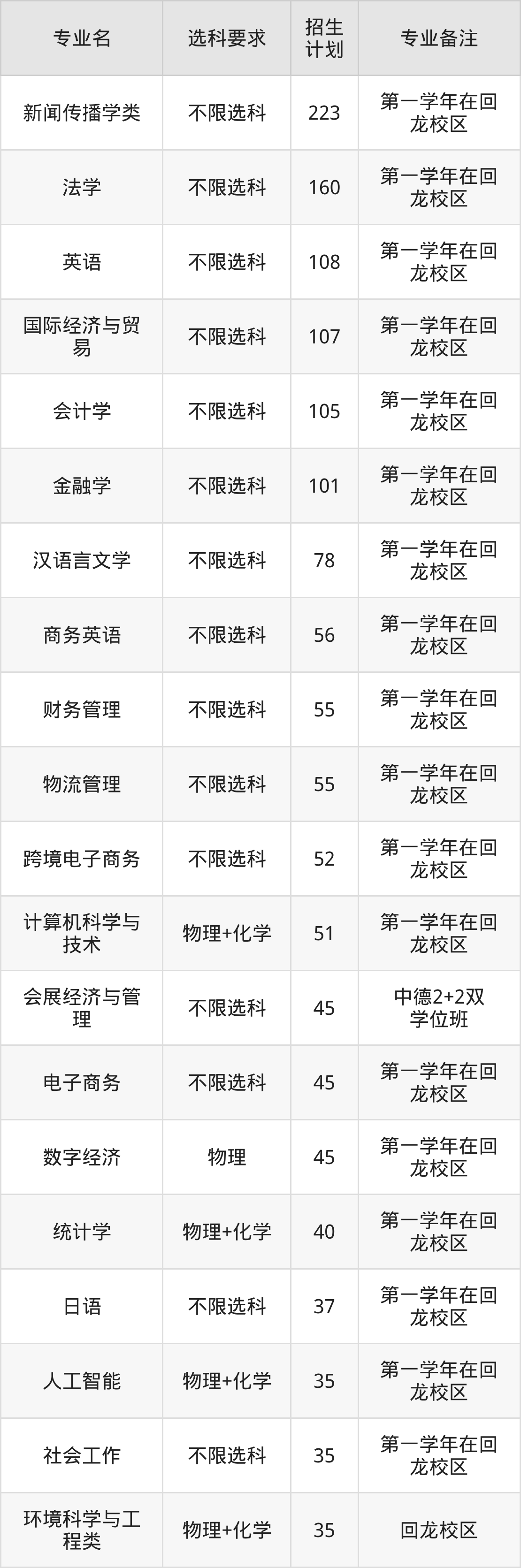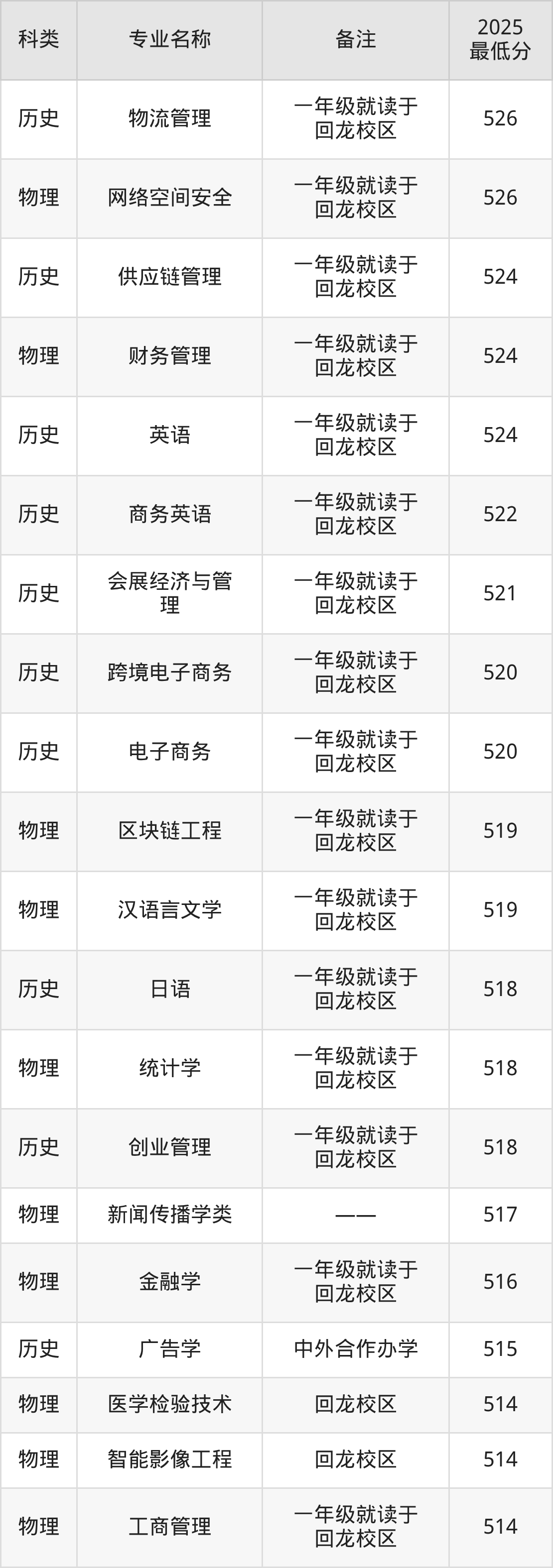 20、物流管理(一年级就读于回龙校区):专业最低510分