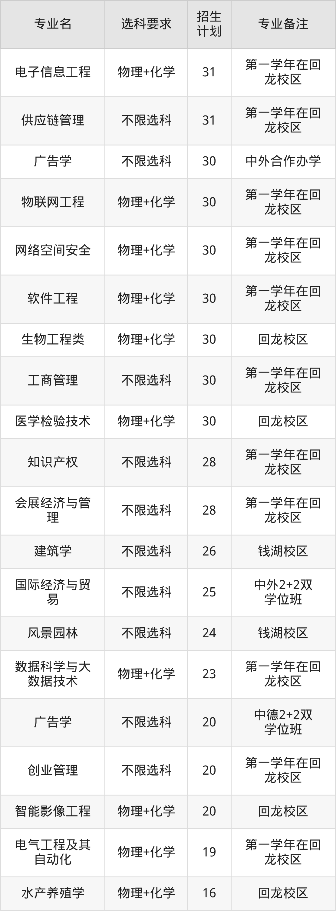 下面是浙江万里学院2025浙江省招生计划表: