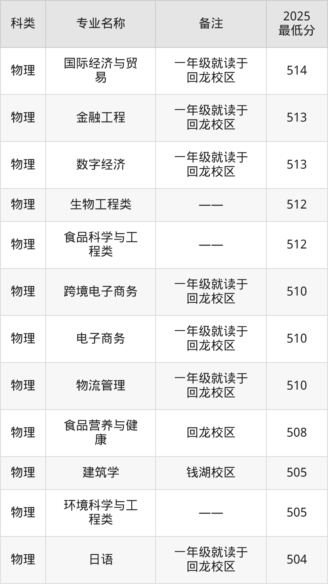 18、数字经济(一年级就读于回龙校区):专业最低513分