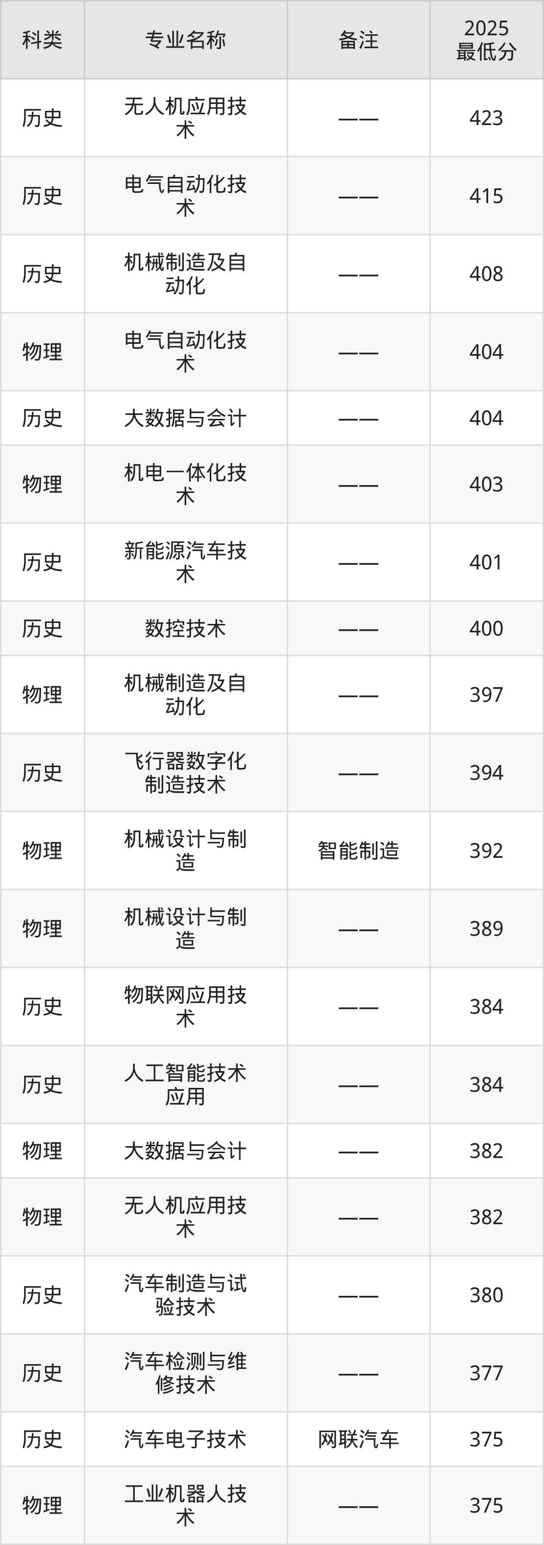 4、机械设计与制造(智能制造):专业最低392分