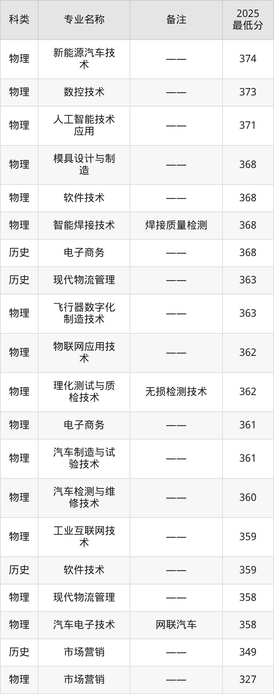 11、智能焊接技术(焊接质量检测):专业最低368分