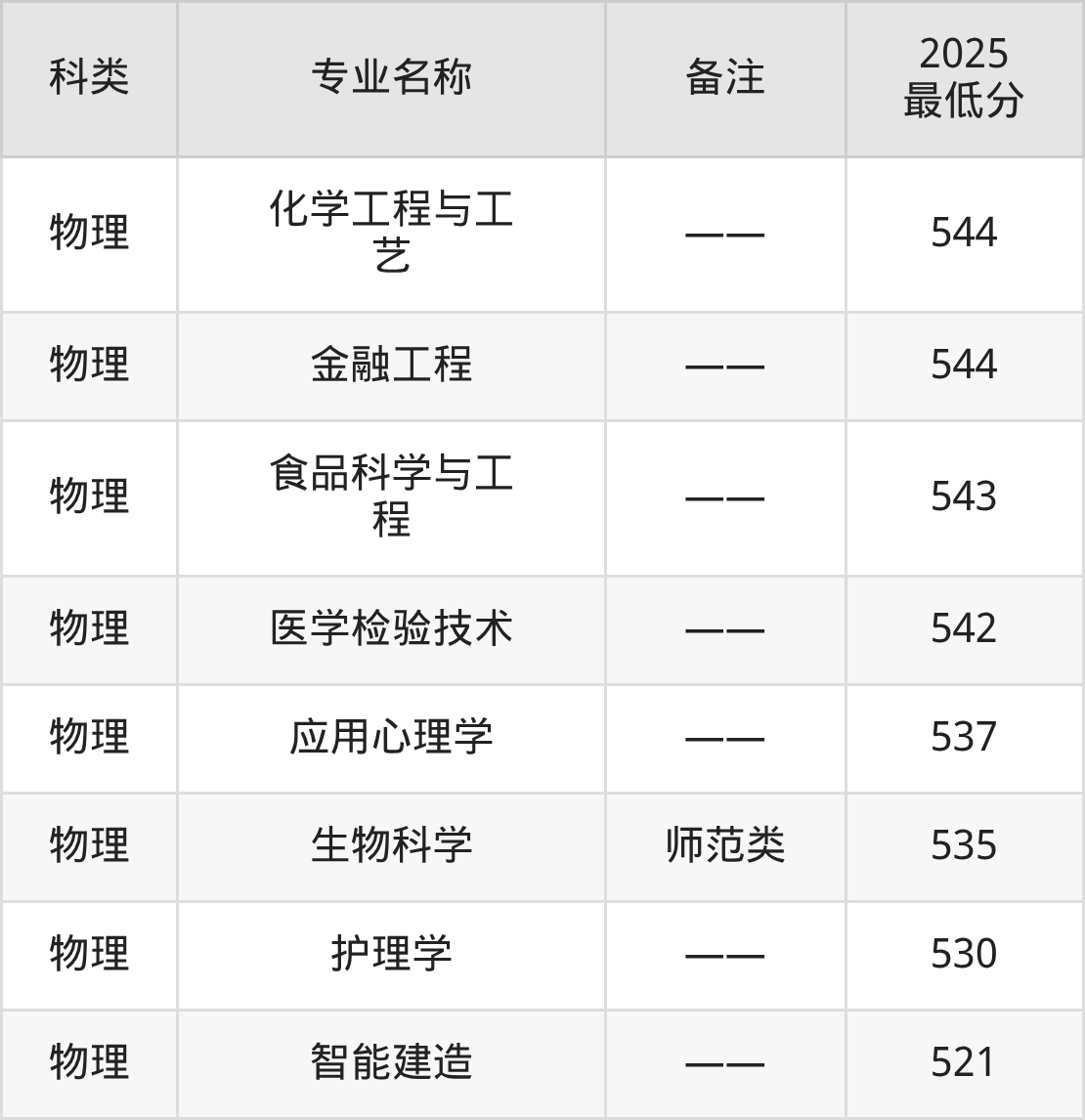 下面是根据2025吉首大学各专业最低录取分数线排名(物理类):