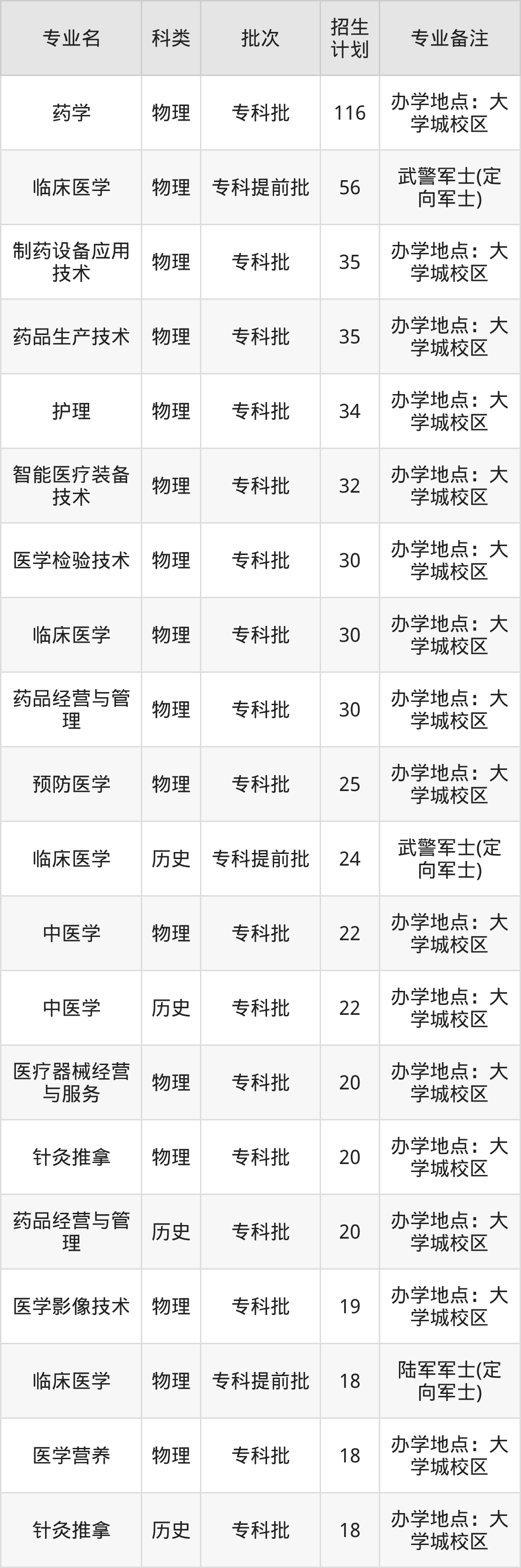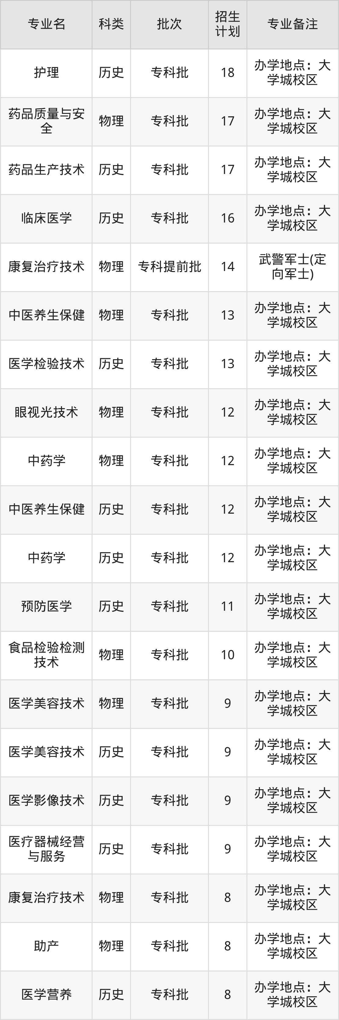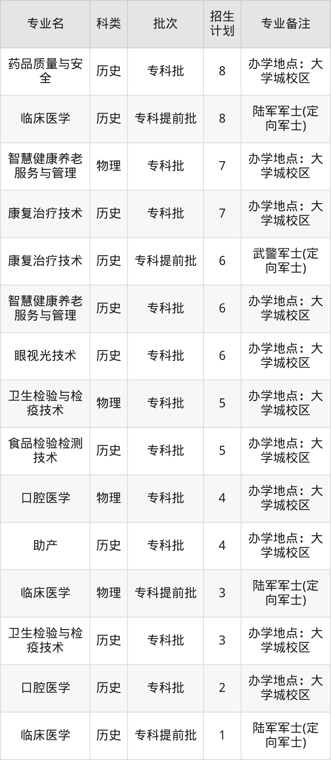 二、重庆医药高等专科学校2025招生计划表