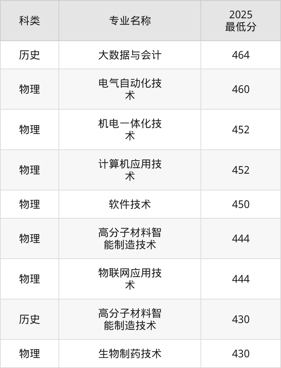 下面是根据2025徐州工业职业技术学院各专业最低录取分数线排名(历史类):