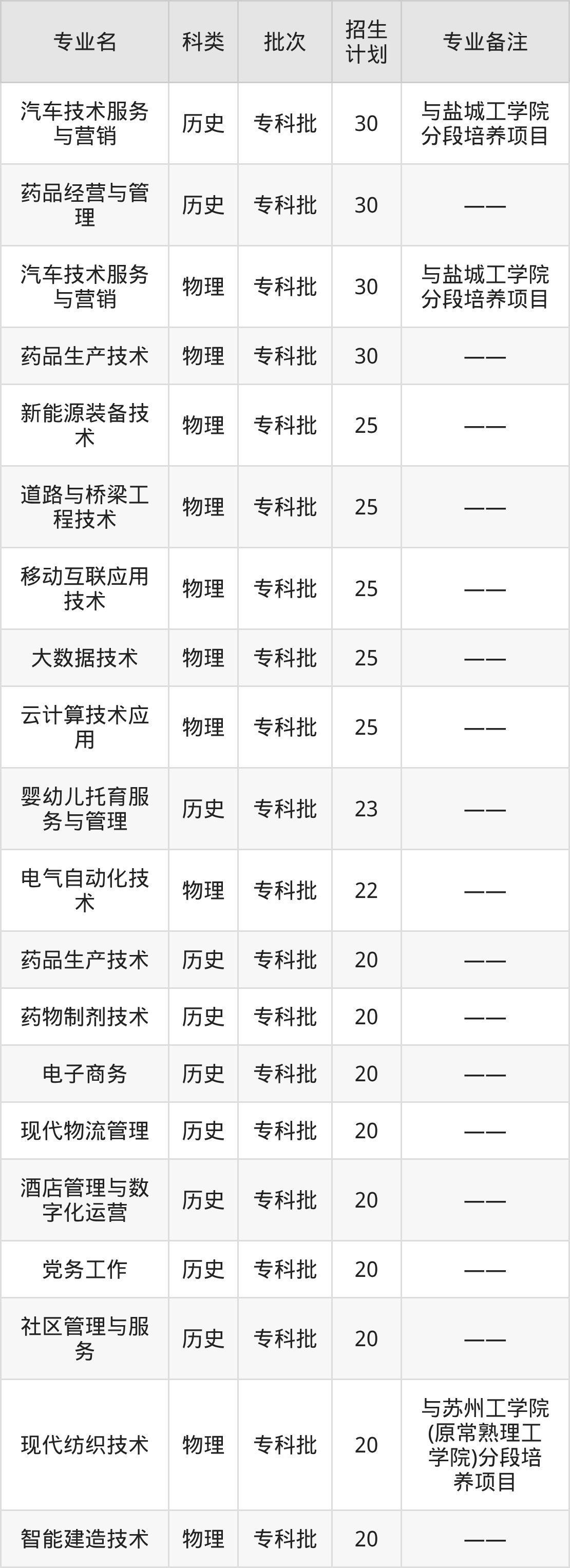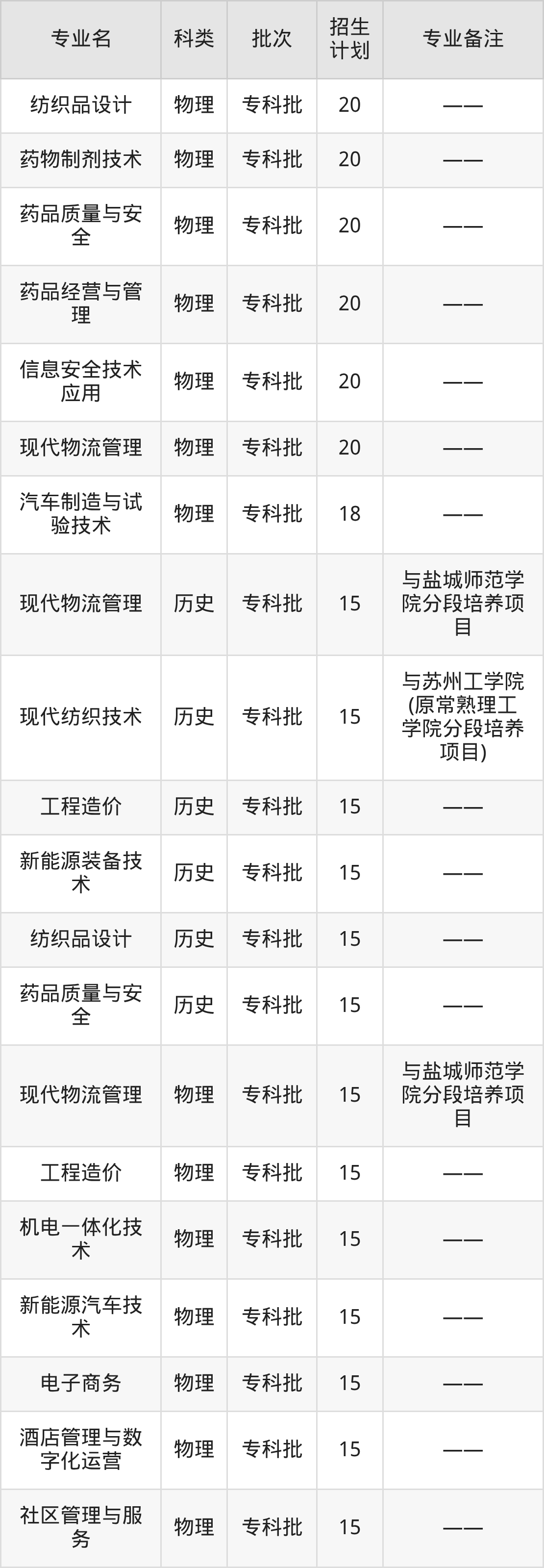 下面是盐城工业职业技术学院2025江苏省招生计划表: