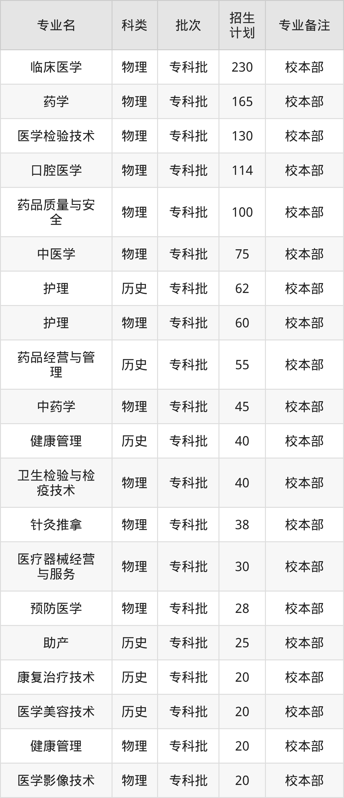 二、楚雄医药高等专科学校2025招生计划表