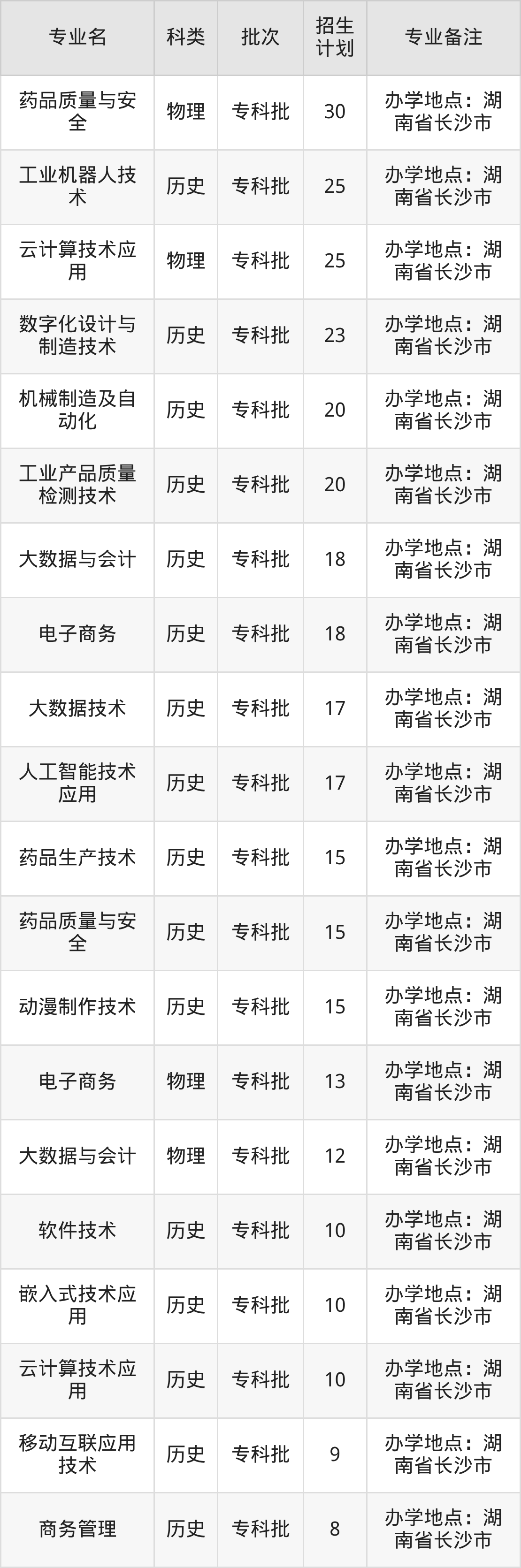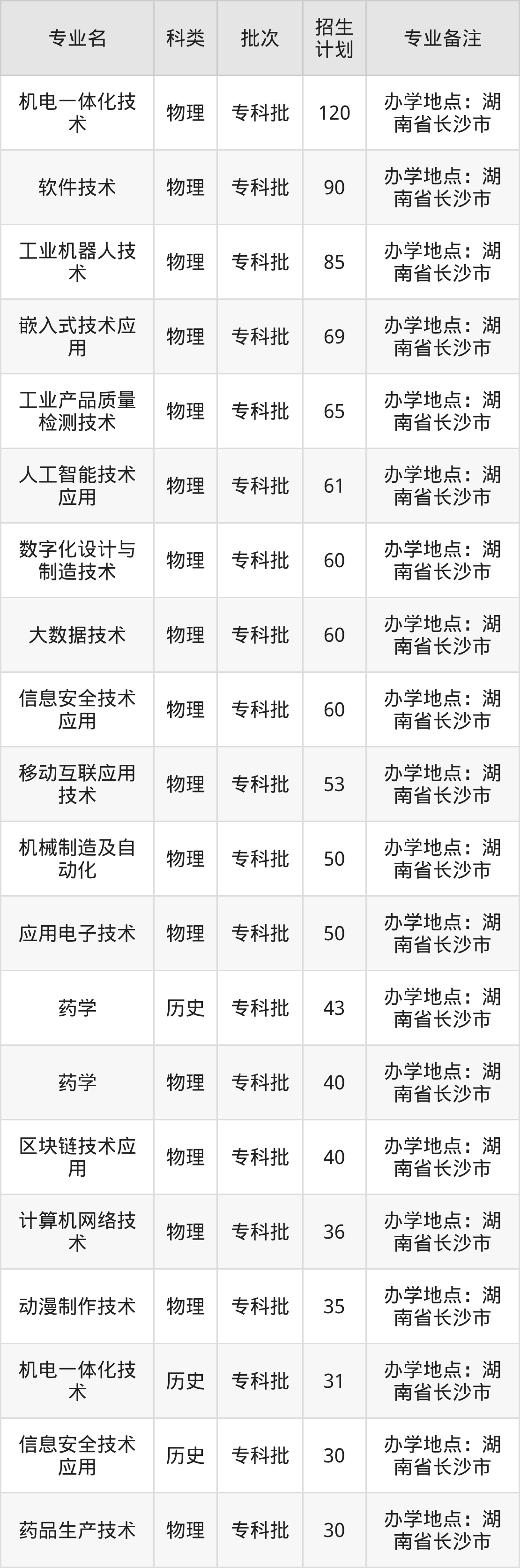 二、湖南科技职业学院2025招生计划表