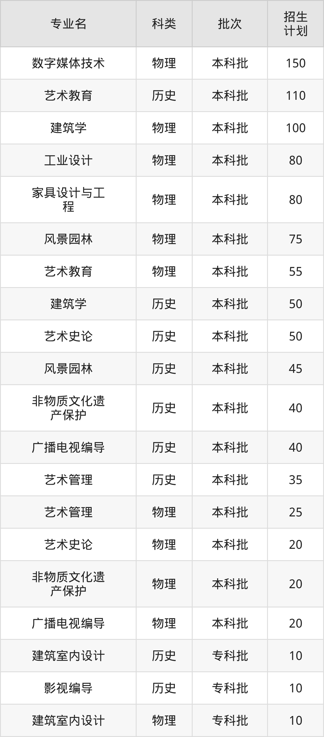 二、河北美术学院2025招生计划表