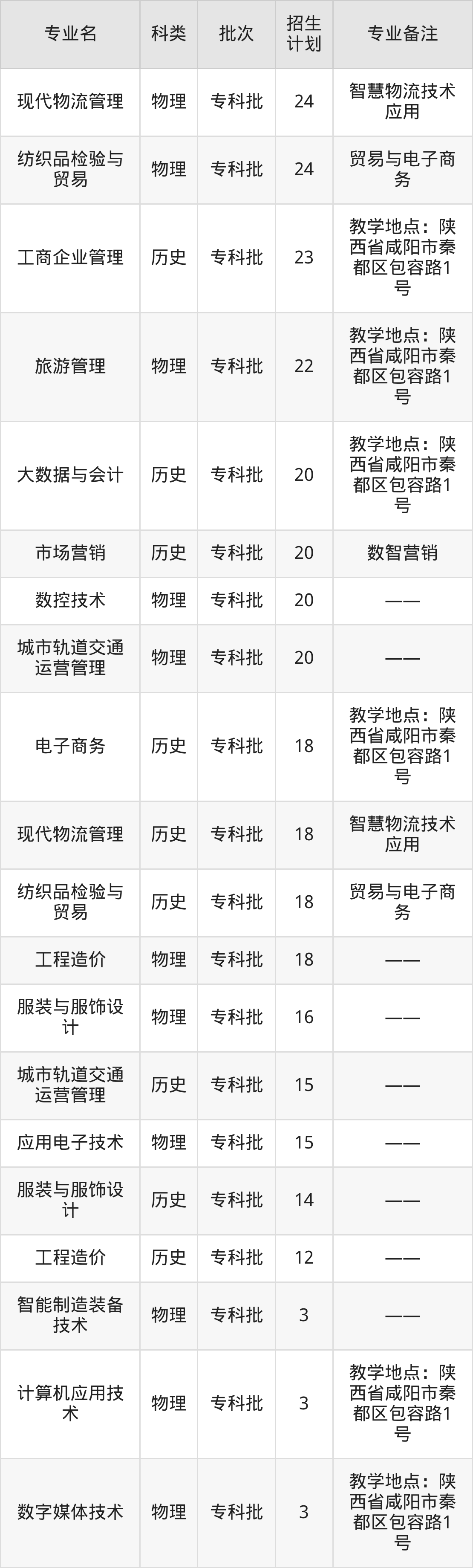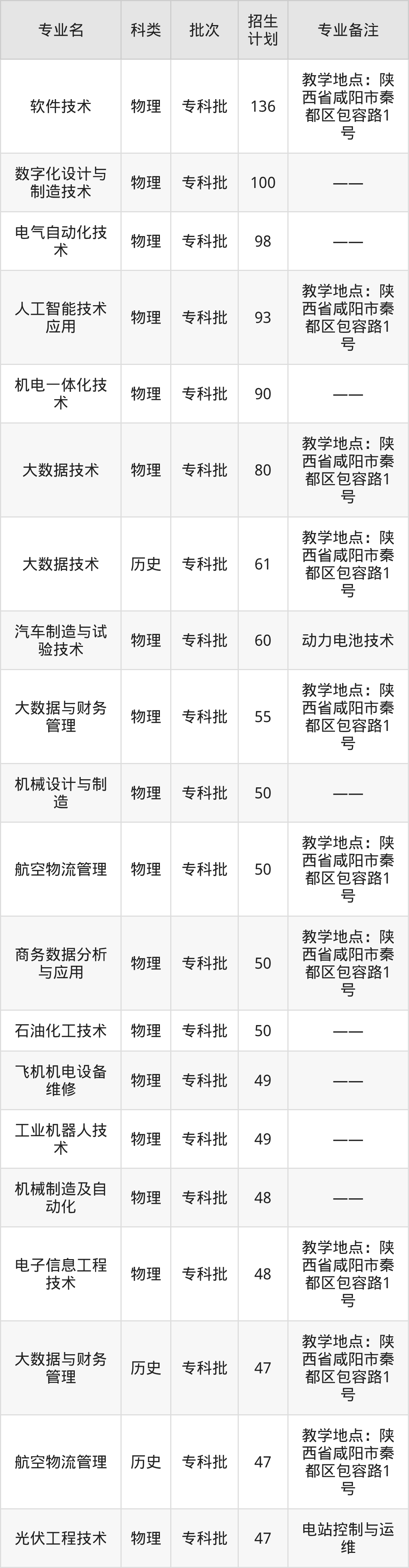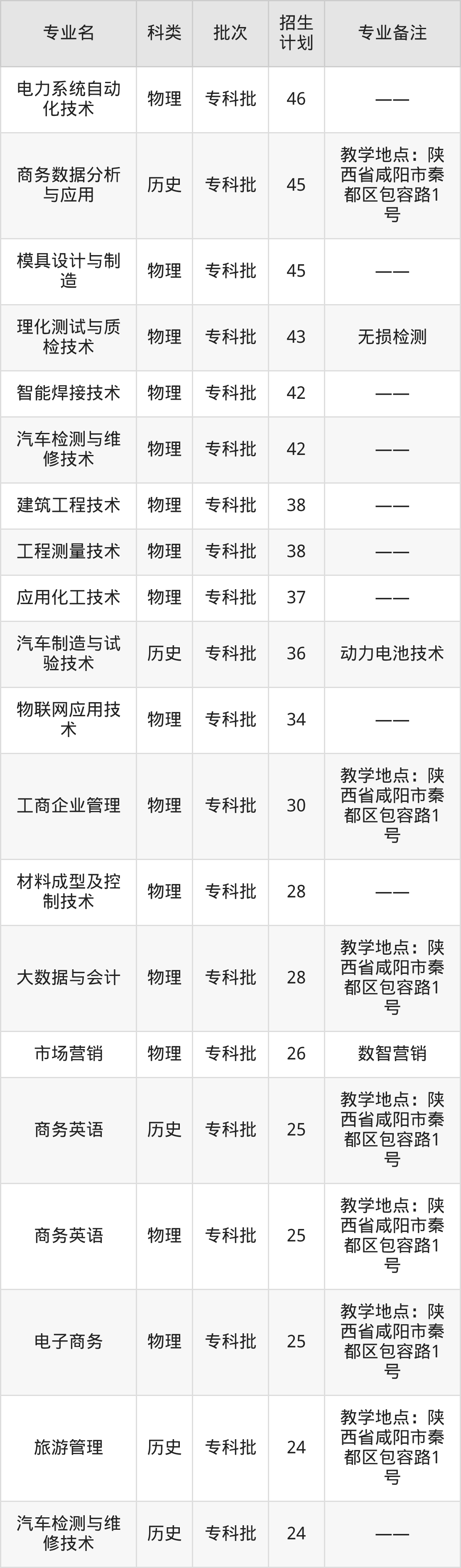 下面是陕西工业职业技术大学2025陕西省招生计划表: