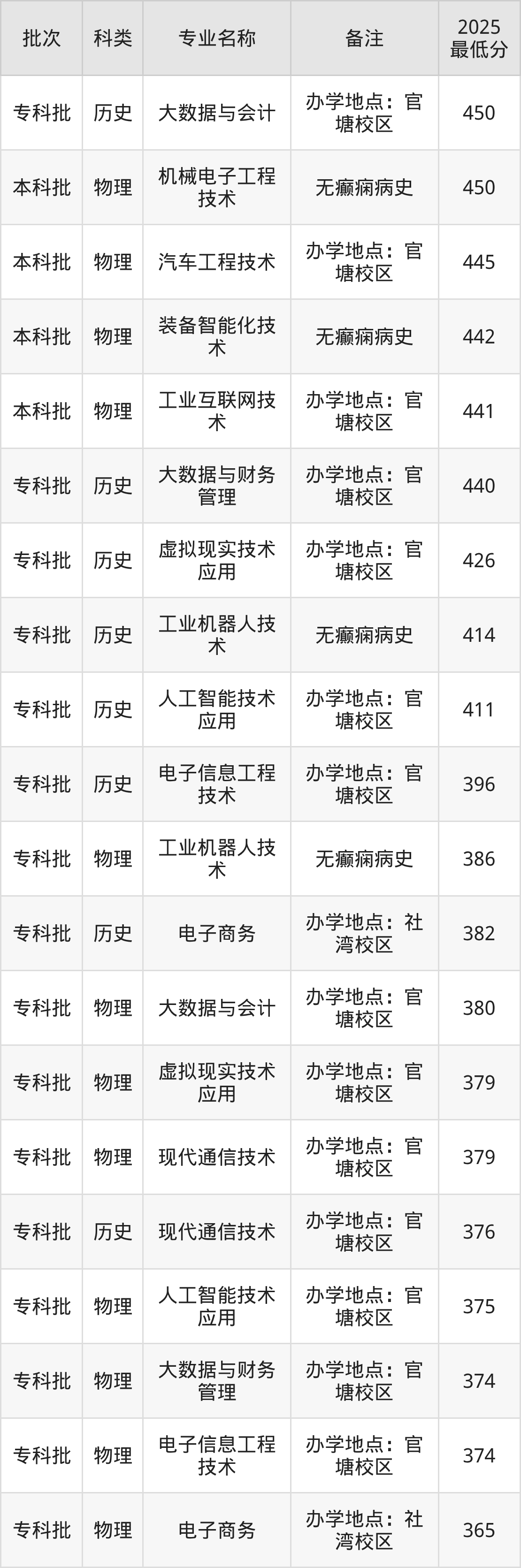 下面是根据2025柳州职业技术大学各专业最低录取分数线排名(物理类):