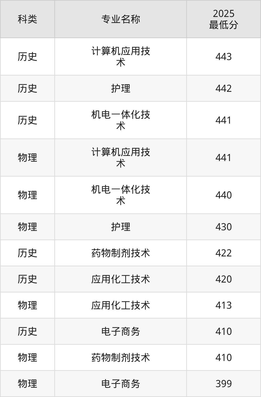 3、机电一体化技术:专业最低441分