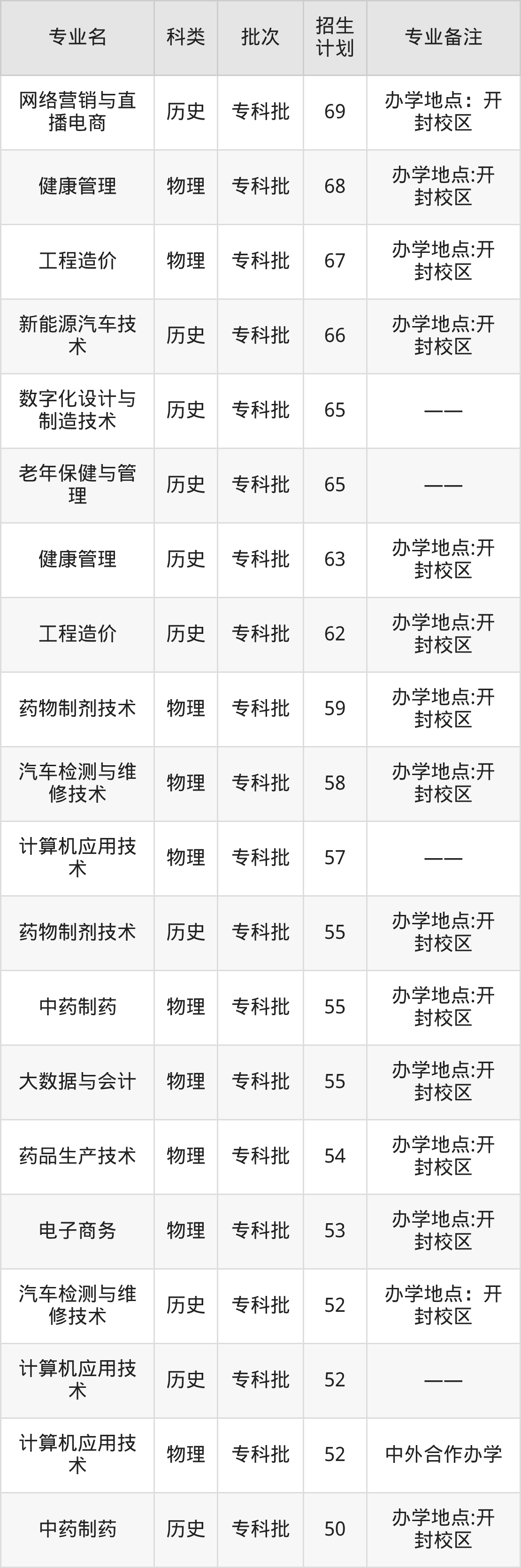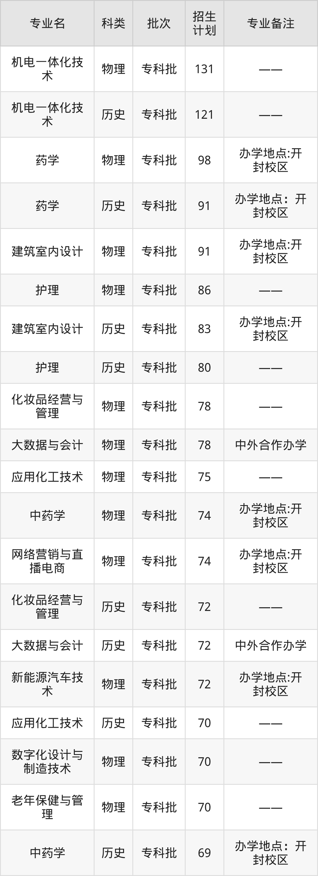 下面是河南应用技术职业学院2025河南省招生计划表: