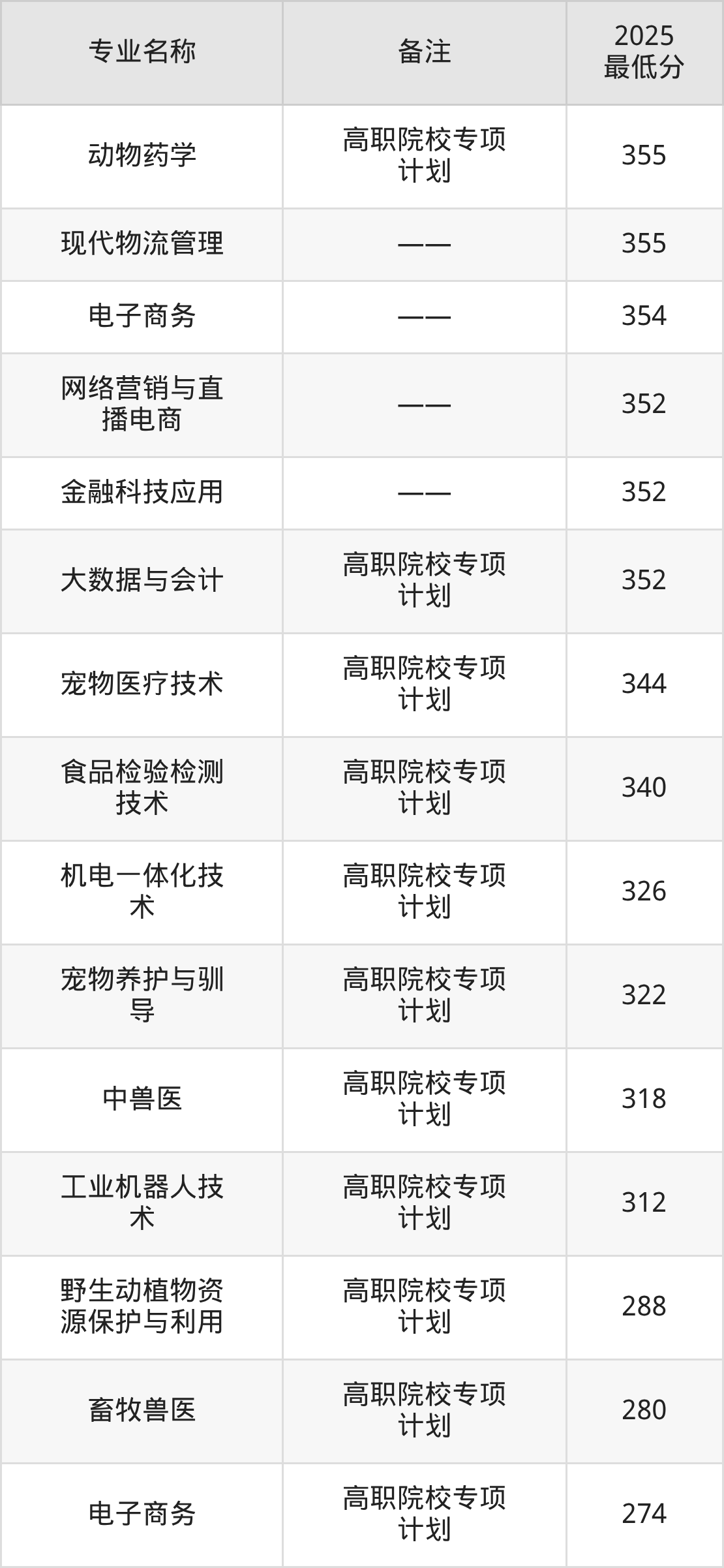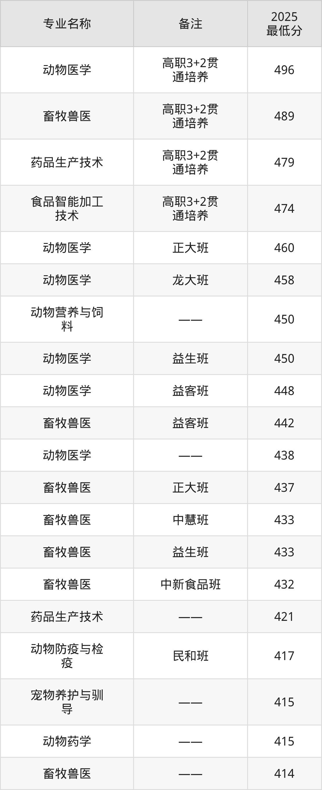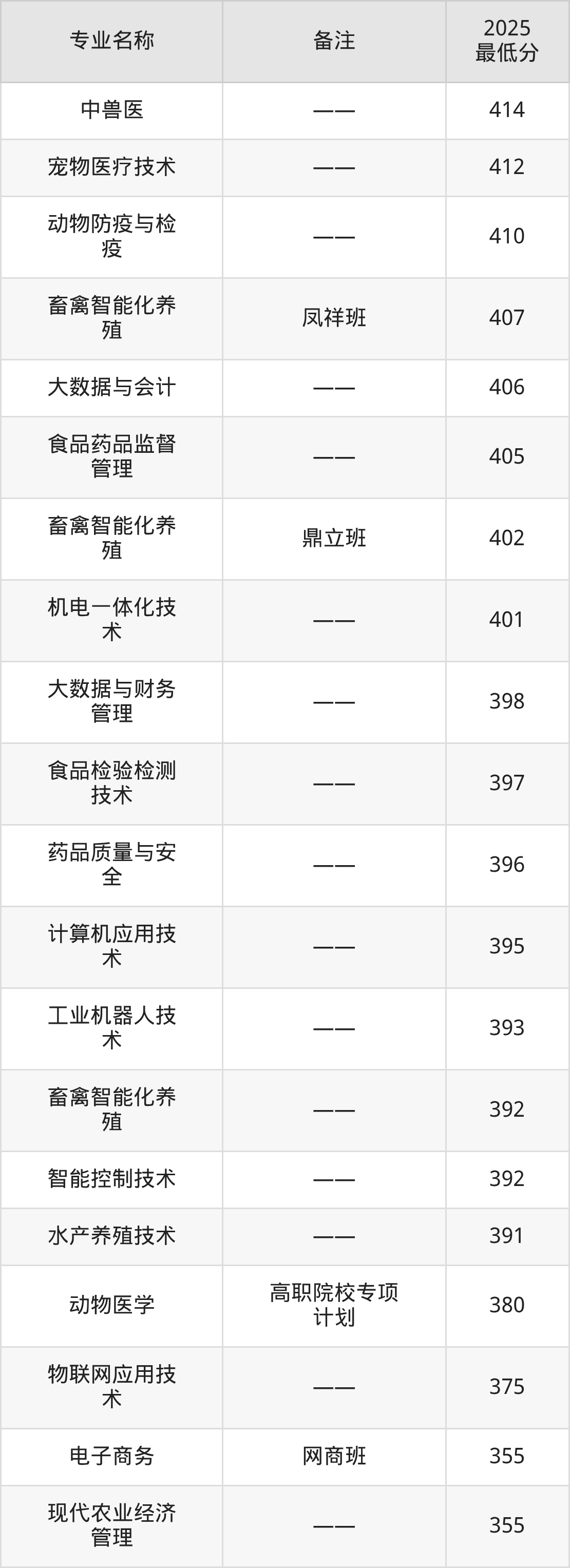 一、2025山东畜牧兽医职业学院专业排名及录取分数线
