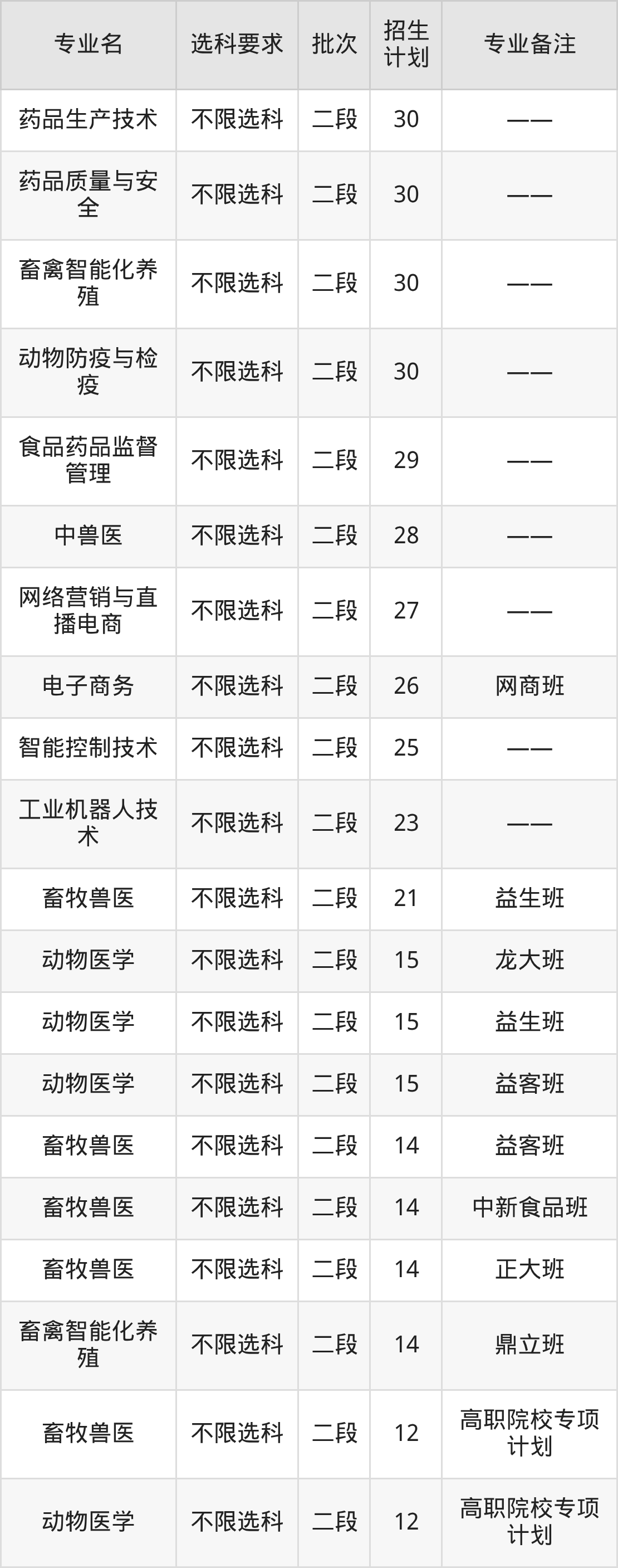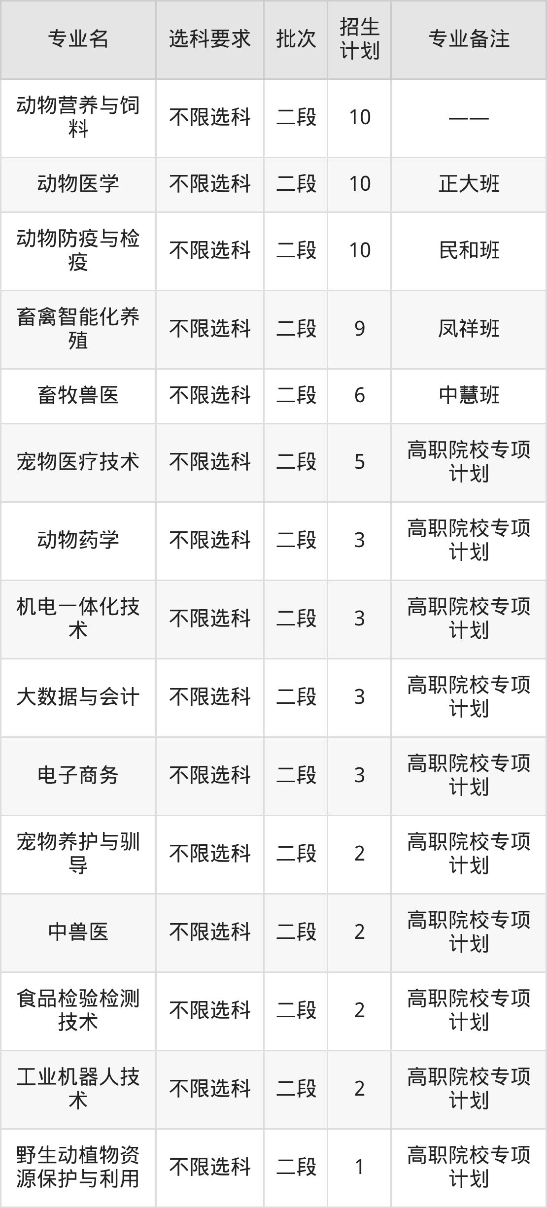 下面是山东畜牧兽医职业学院2025山东省招生计划表:
