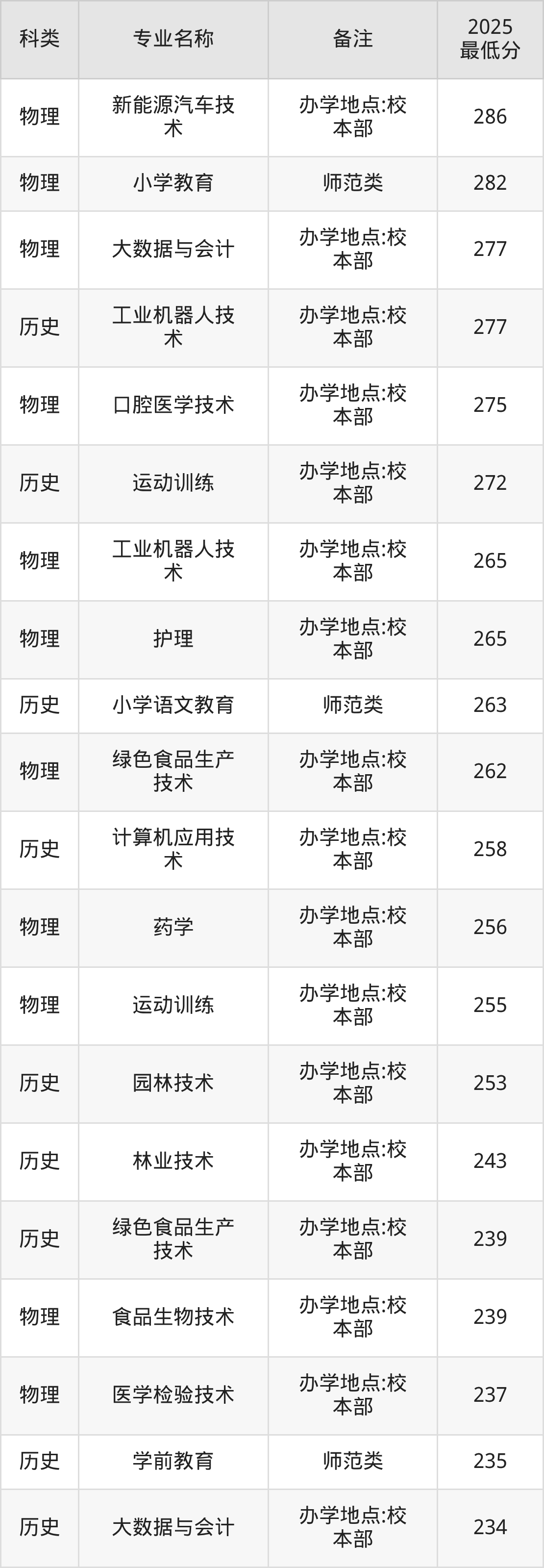 下面是根据2025扎兰屯职业学院各专业最低录取分数线排名(物理类):
