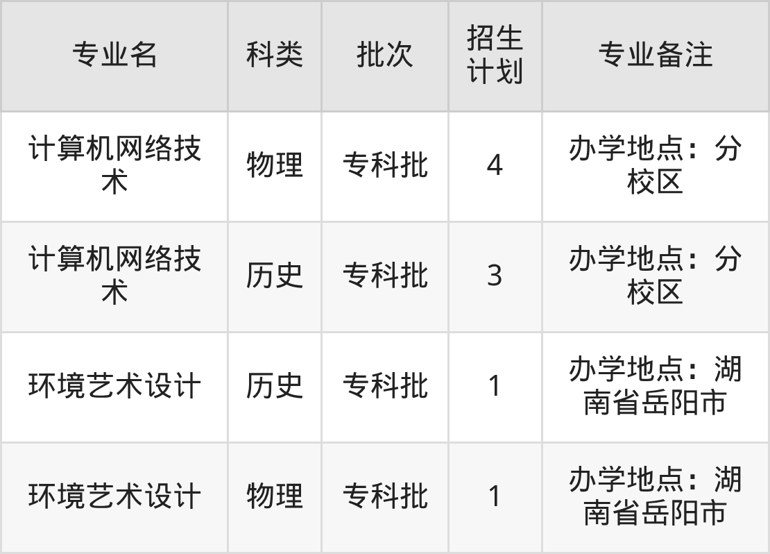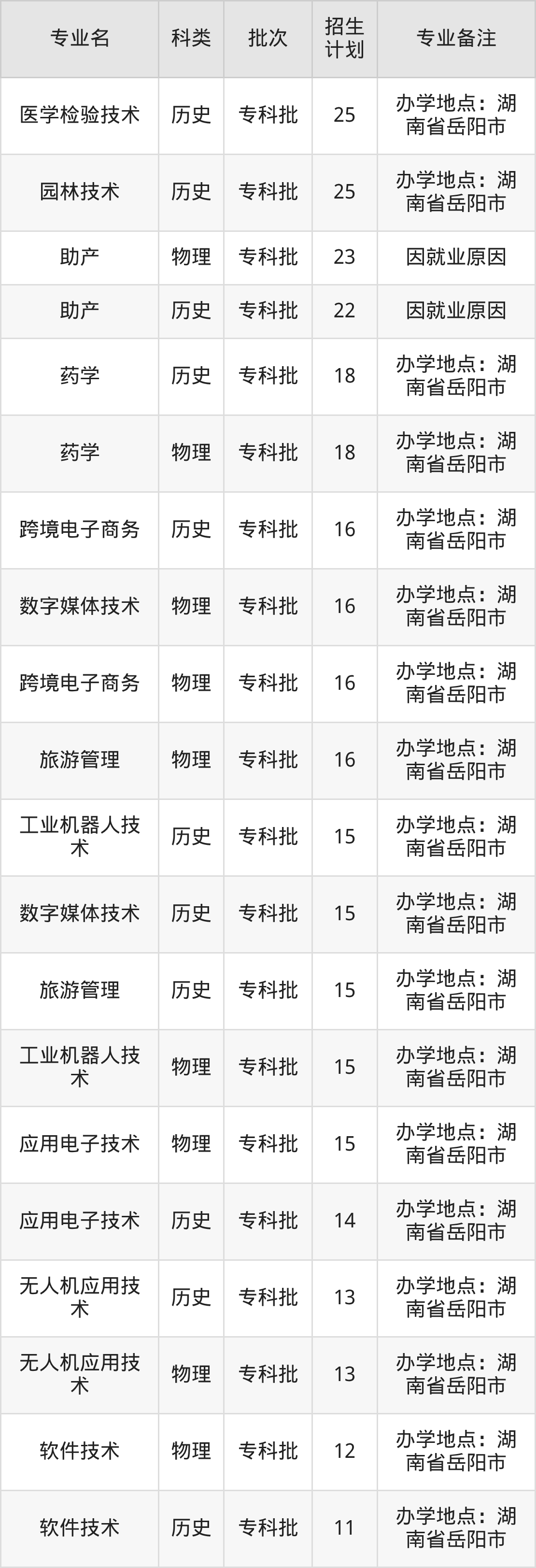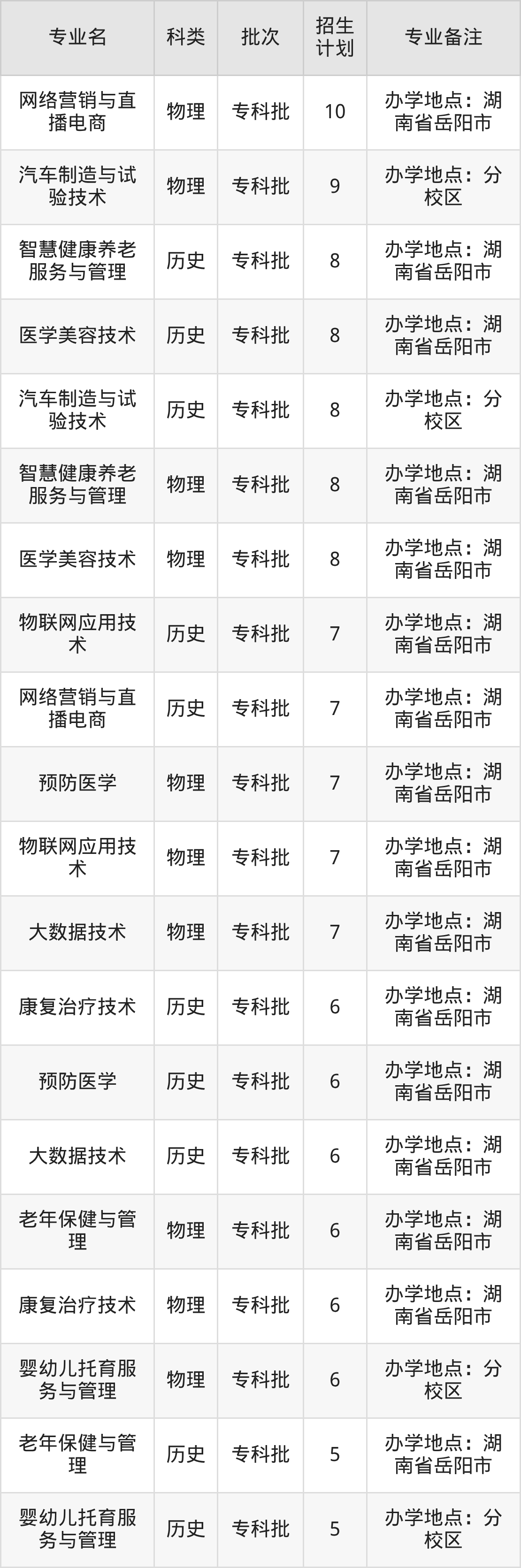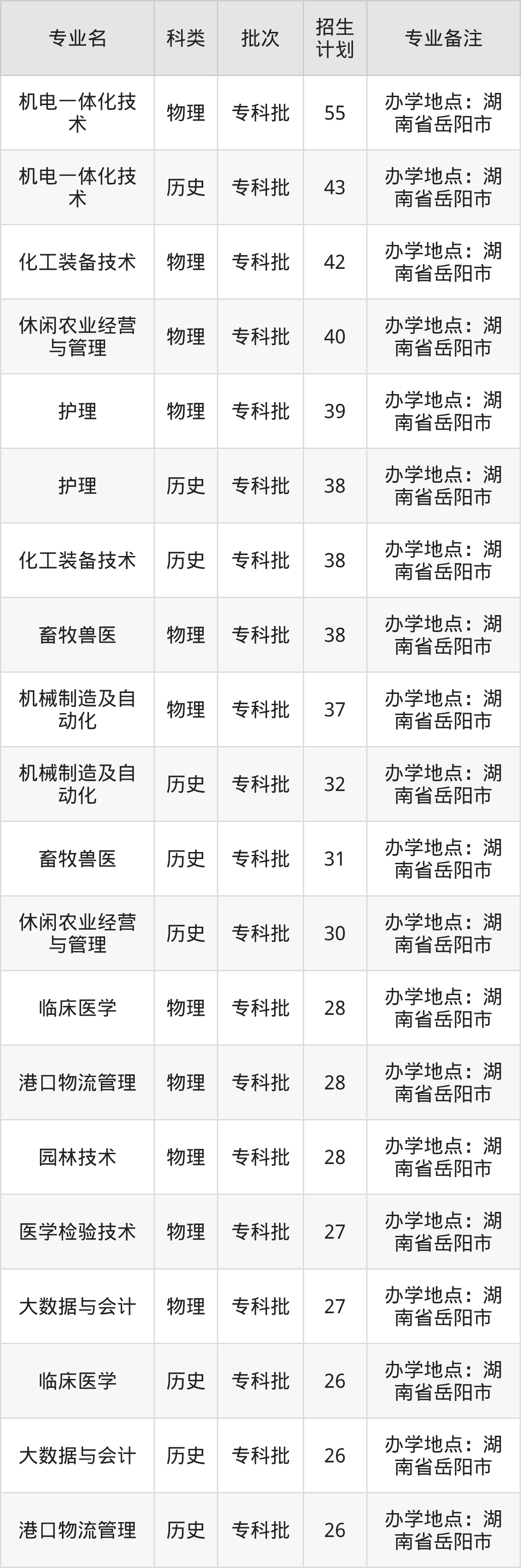 二、岳阳职业技术学院2025招生计划表