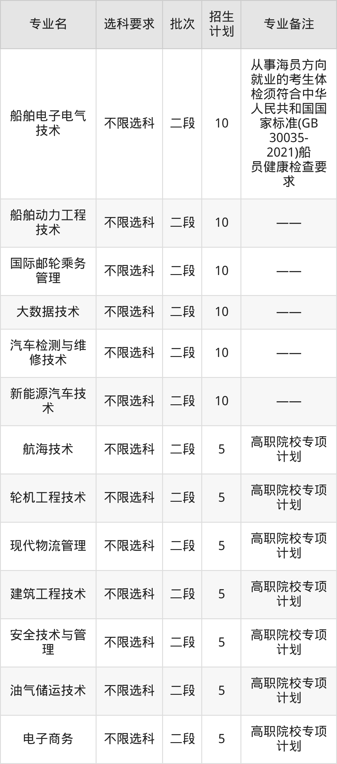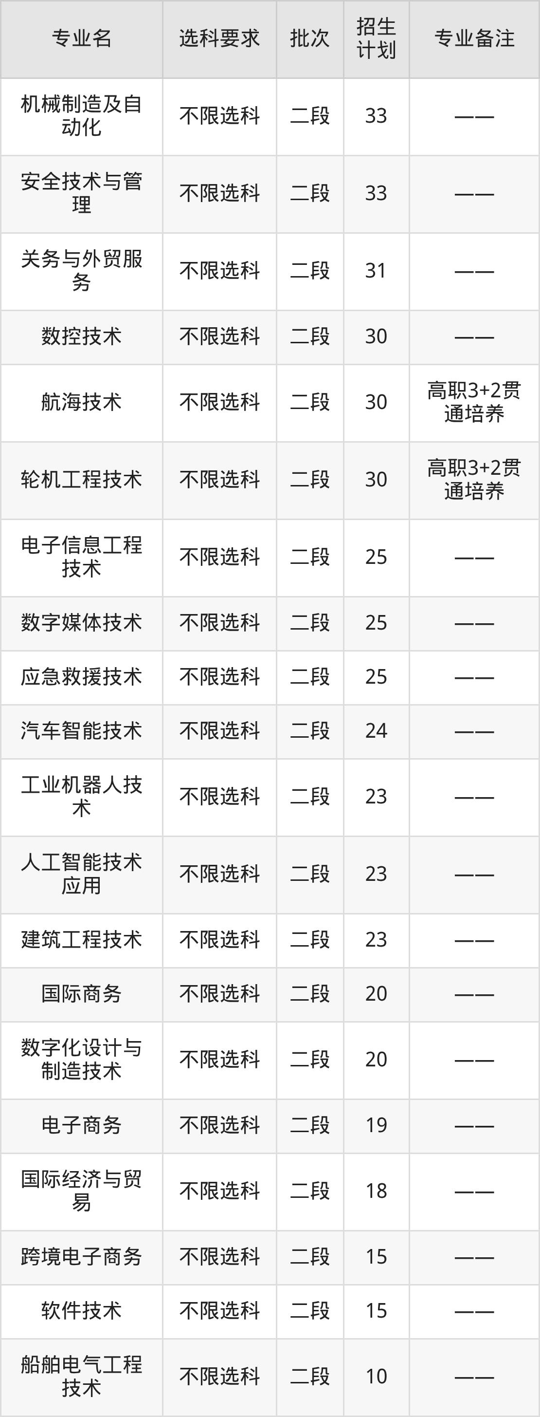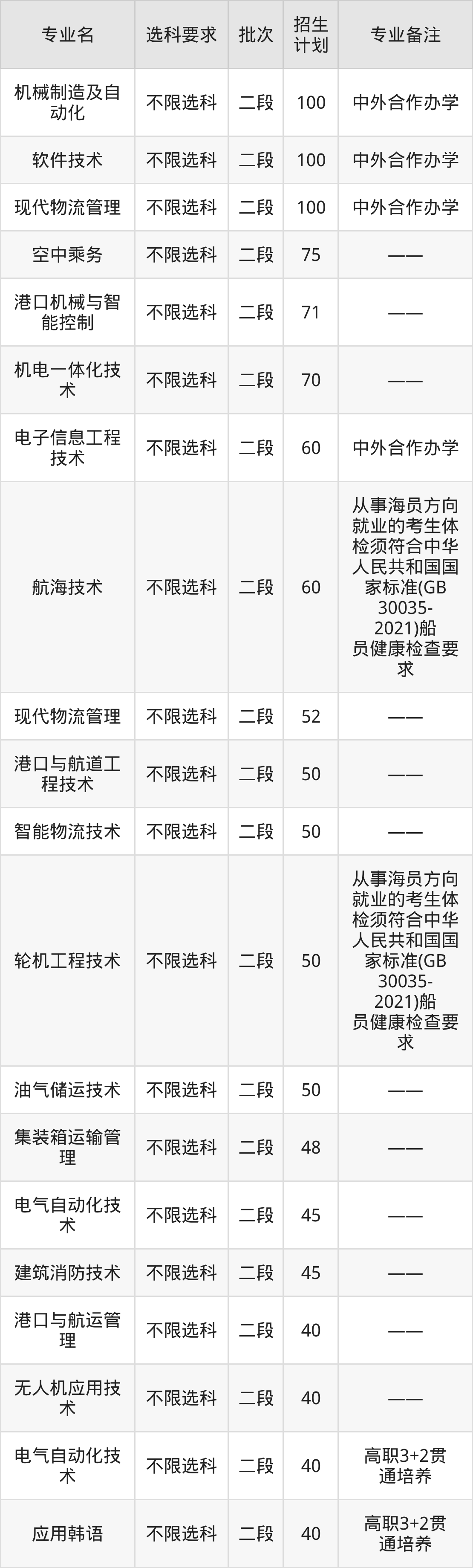 二、青岛港湾职业技术学院2025招生计划表