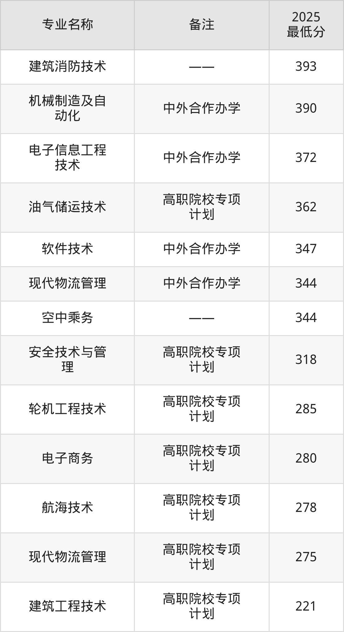 39、轮机工程技术(高职院校专项计划):专业最低285分