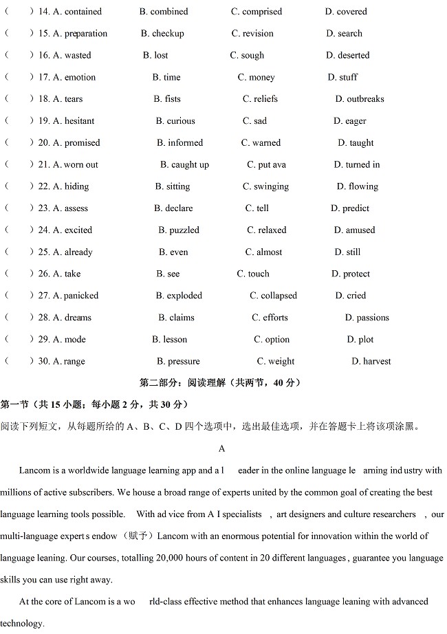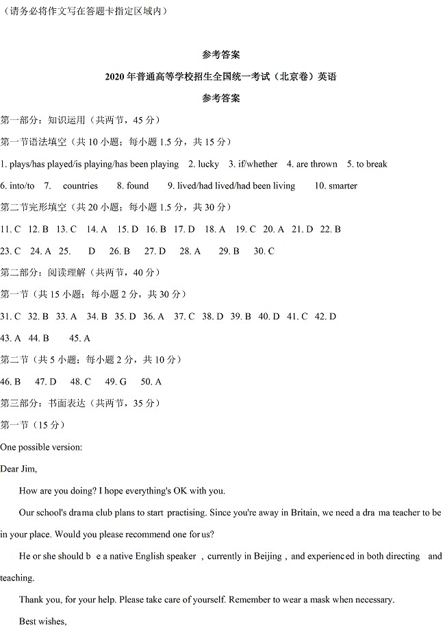 北京是全国高考采用自主命题的省市之一,2021年高考结束后,北京考生都想要知道英语卷子的答案。为了满足大家的需求,本期小编就为大家奉上2021年北京卷英语真题和答案,及2021年北京高考英语试题解析(最新整理),供2021年北京高考生参考。