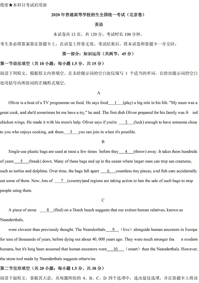 2021年高考即将开始,关于2021年北京高考英语真题和答案解析,高考100网将在试题及答案正式公布以后,第一时间进行更新,请大家持续关注高考100网。