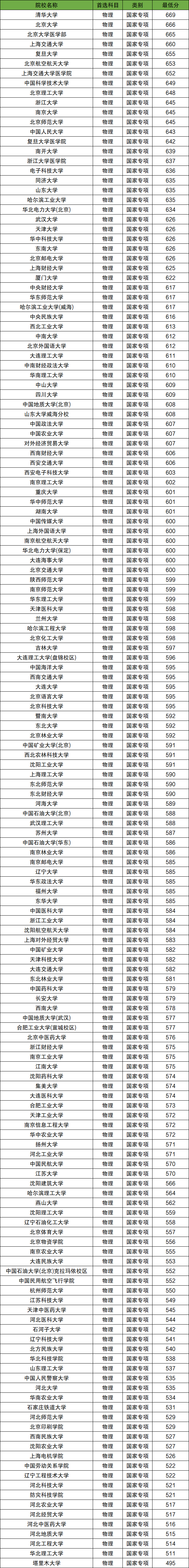 1、中国科学技术大学在河北物理类中,国家专项的录取分数线为649分,高考普通专业最低673分,降低了24分。