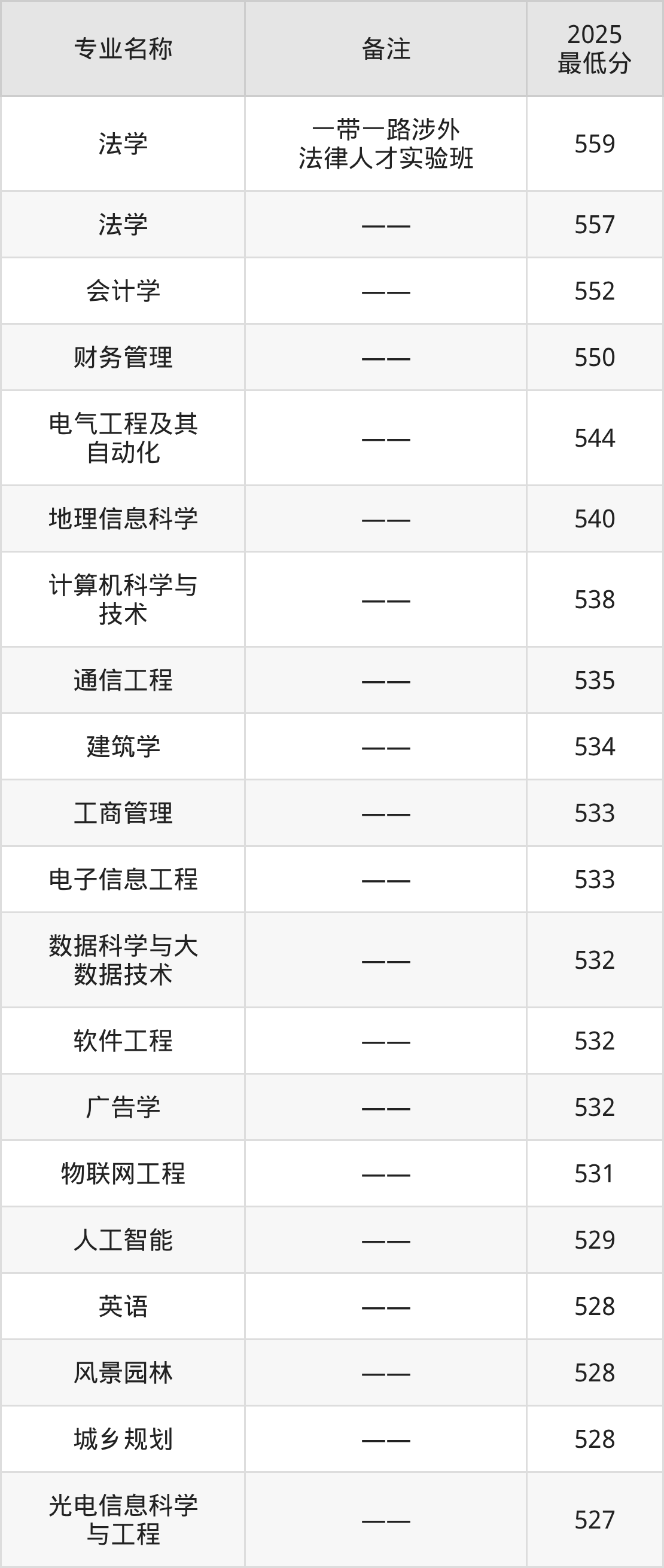 1、法学(一带一路涉外法律人才实验班):专业最低559分
