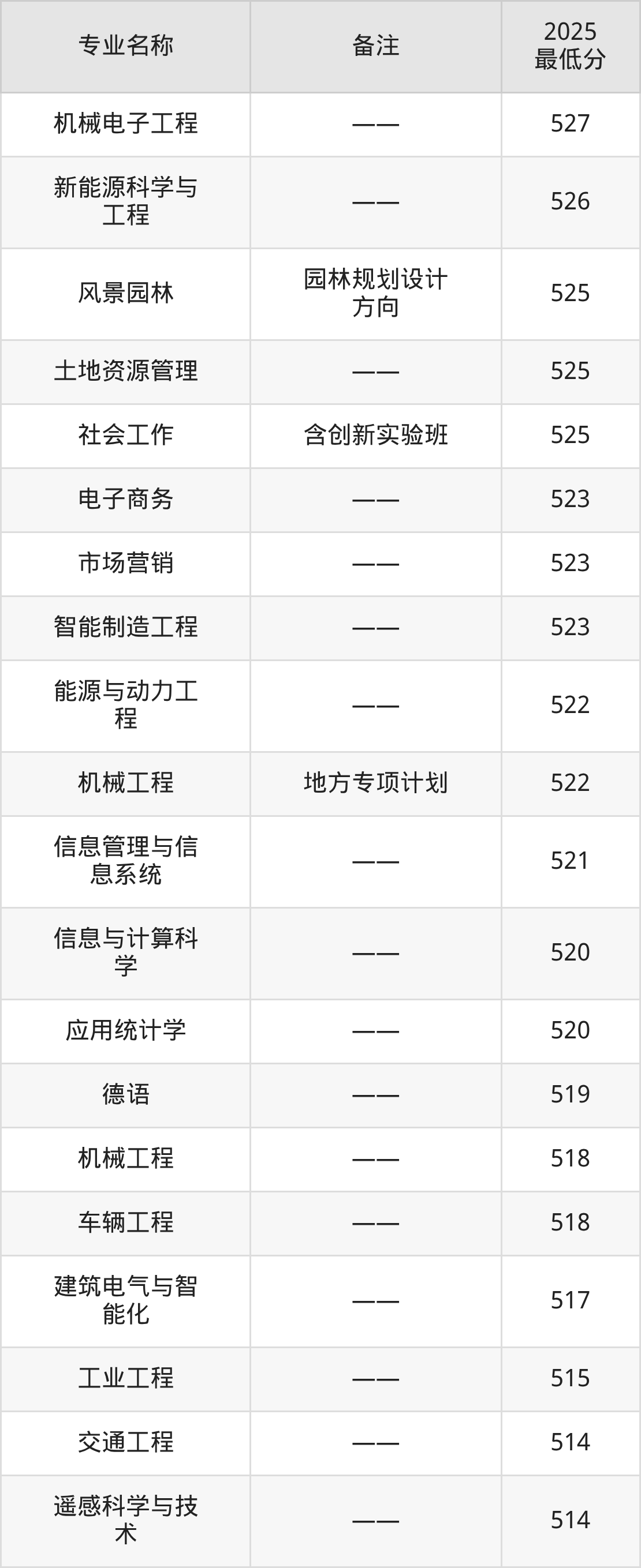 19、机械工程(地方专项计划):专业最低522分