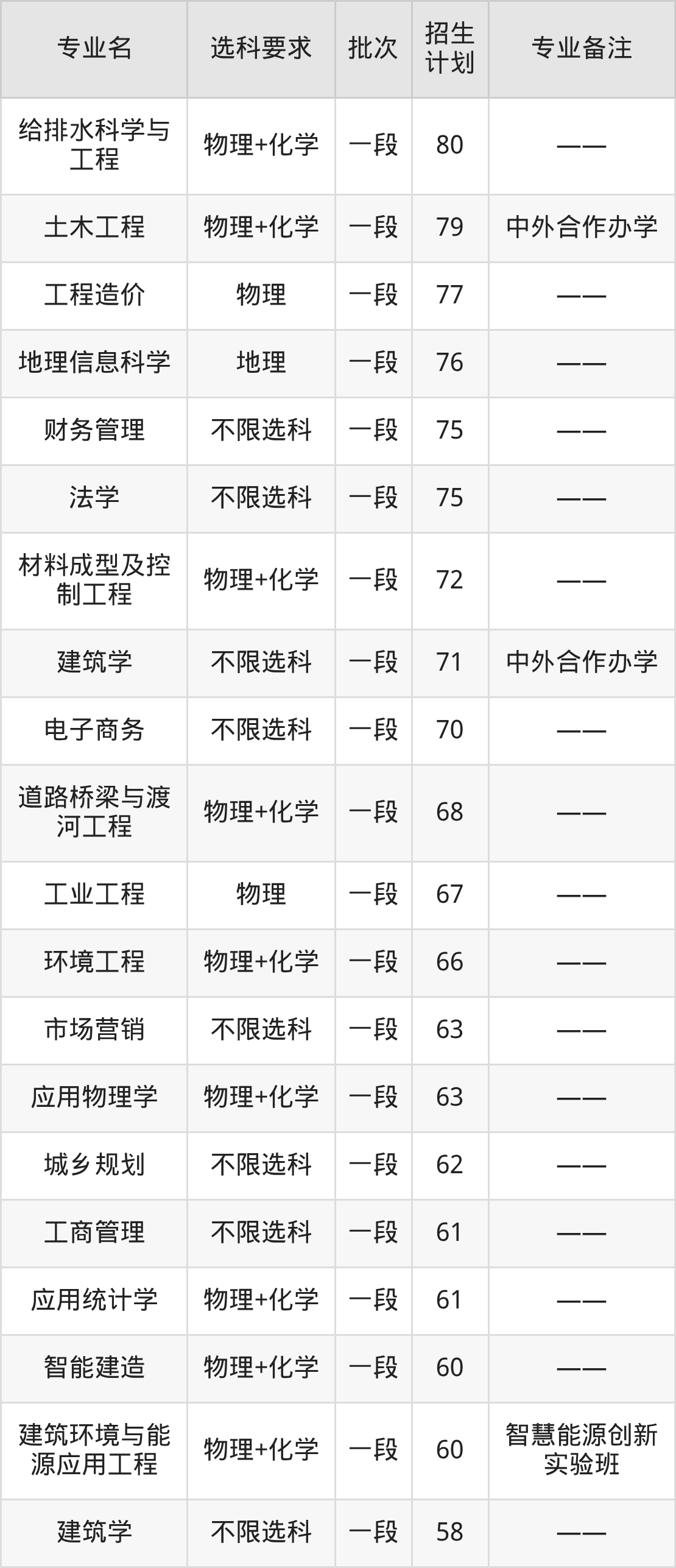 二、山东建筑大学2025招生计划表