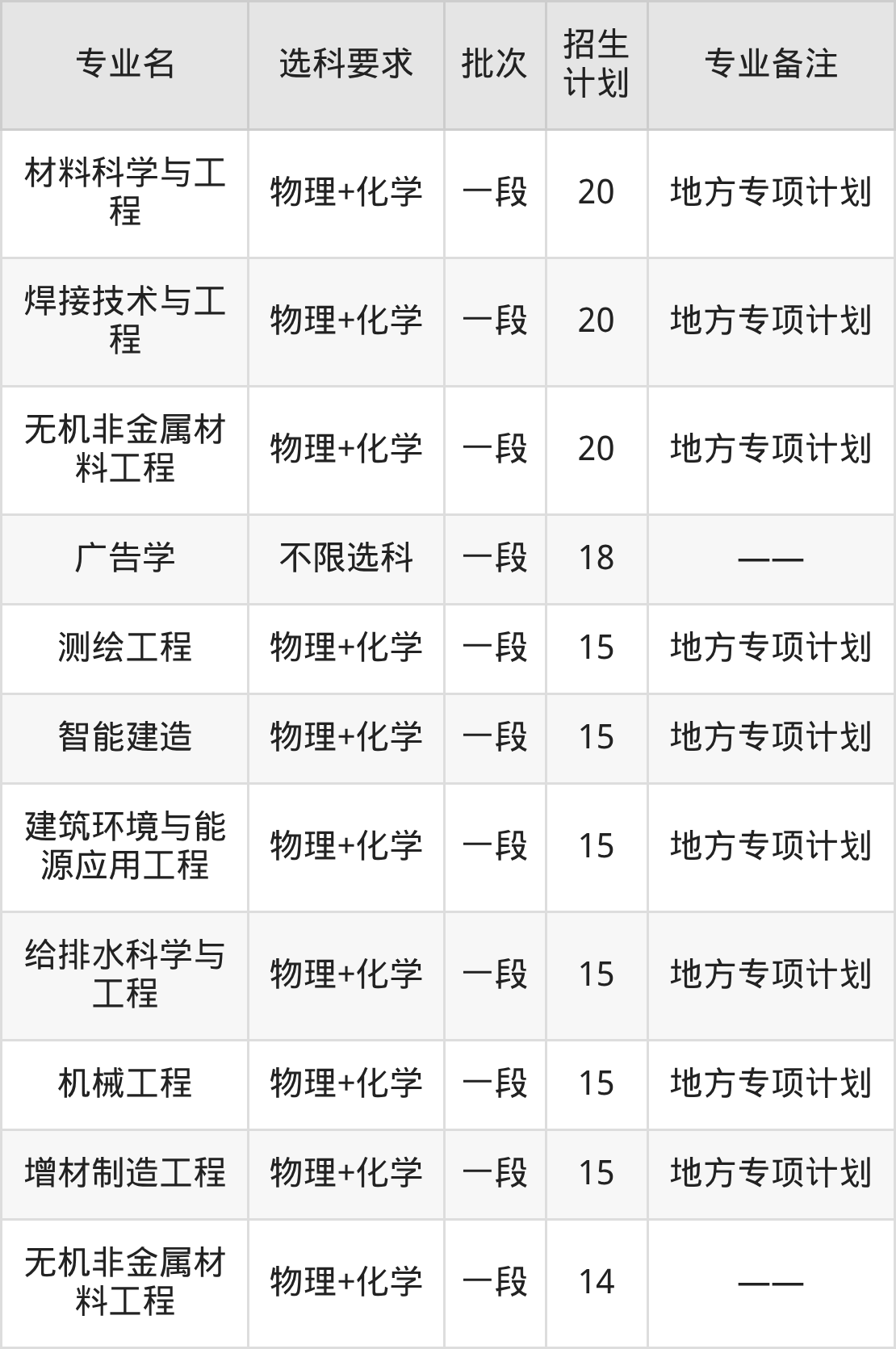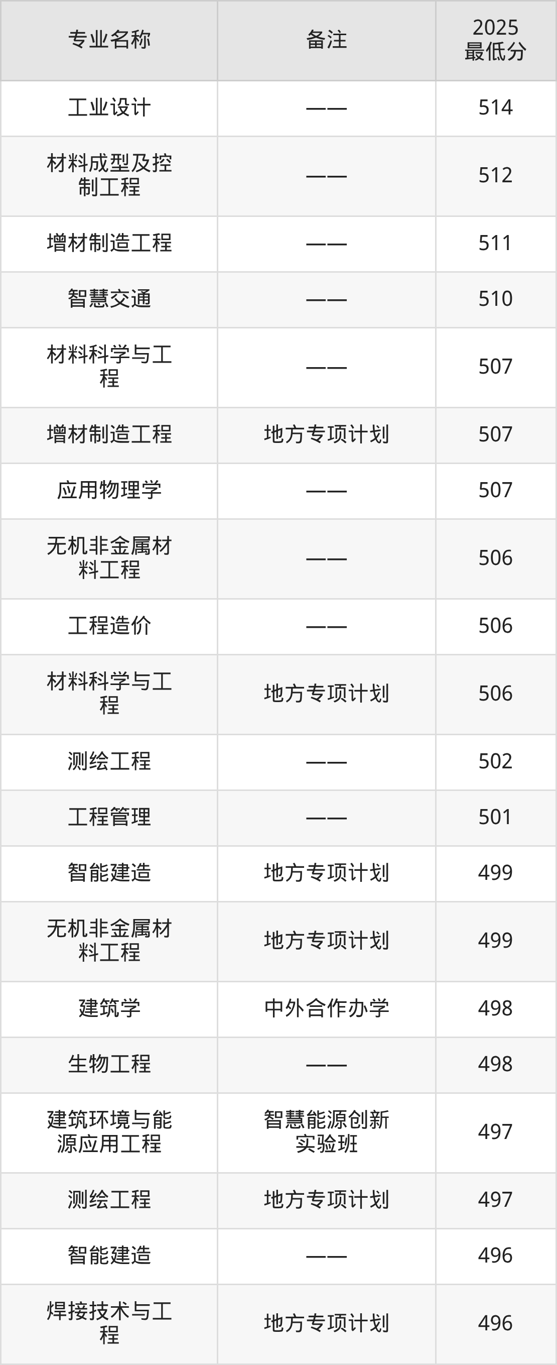 37、焊接技术与工程(地方专项计划):专业最低496分