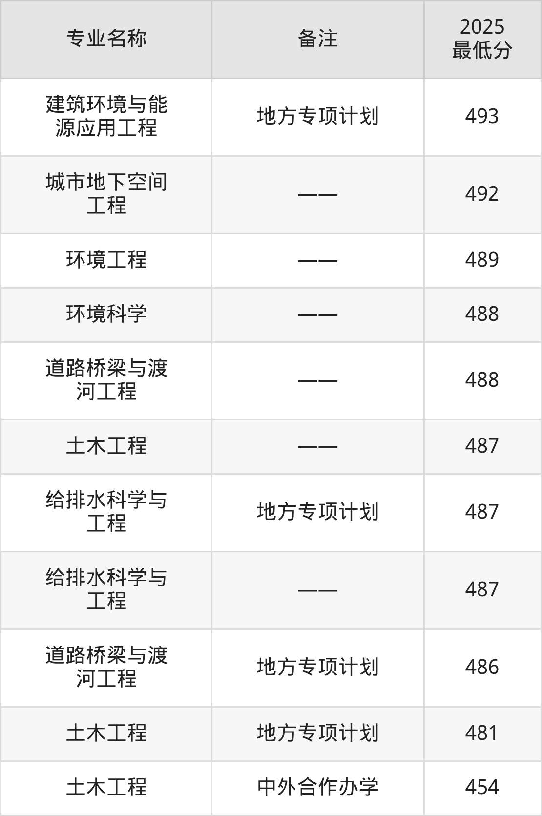 42、给排水科学与工程(地方专项计划):专业最低487分