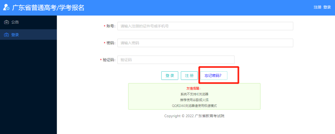 1、登录广东省教育考试院普通高考报名系统,点击登录