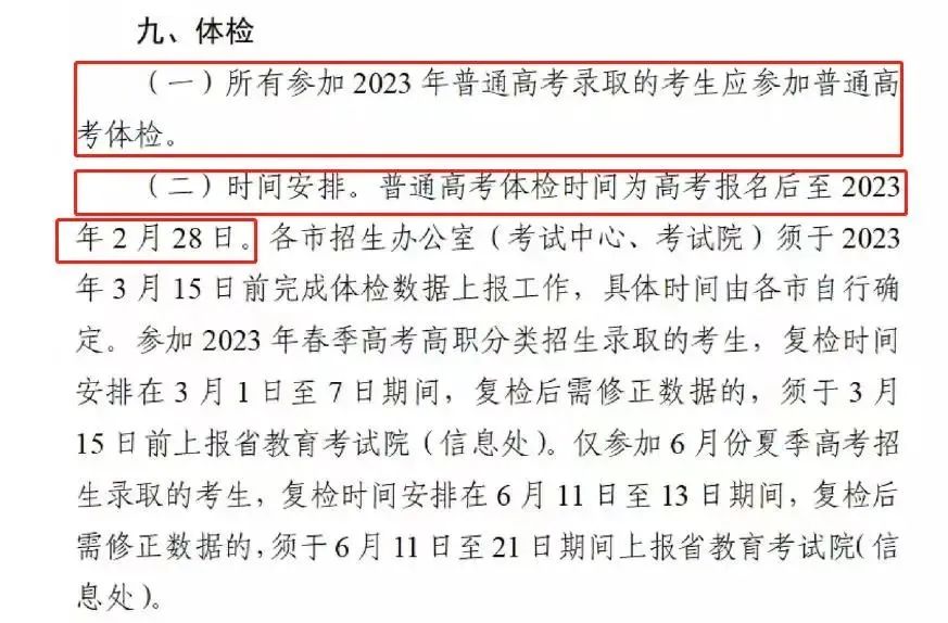 据此前广东省教育考试院通知,2023广东高考体检复检时间如下: