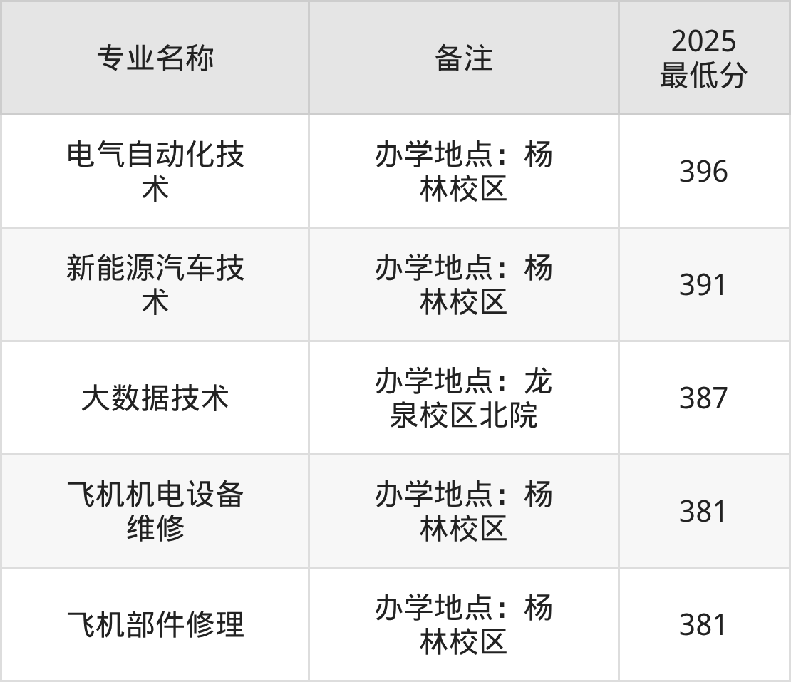 4、飞机机电设备维修(办学地点:杨林校区):专业最低381分