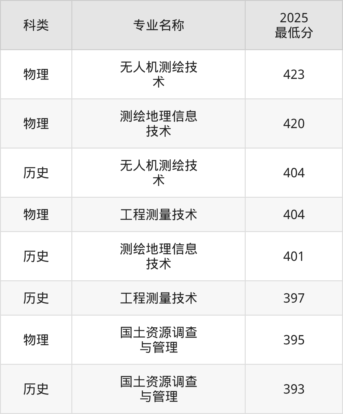 2、测绘地理信息技术:专业最低401分
