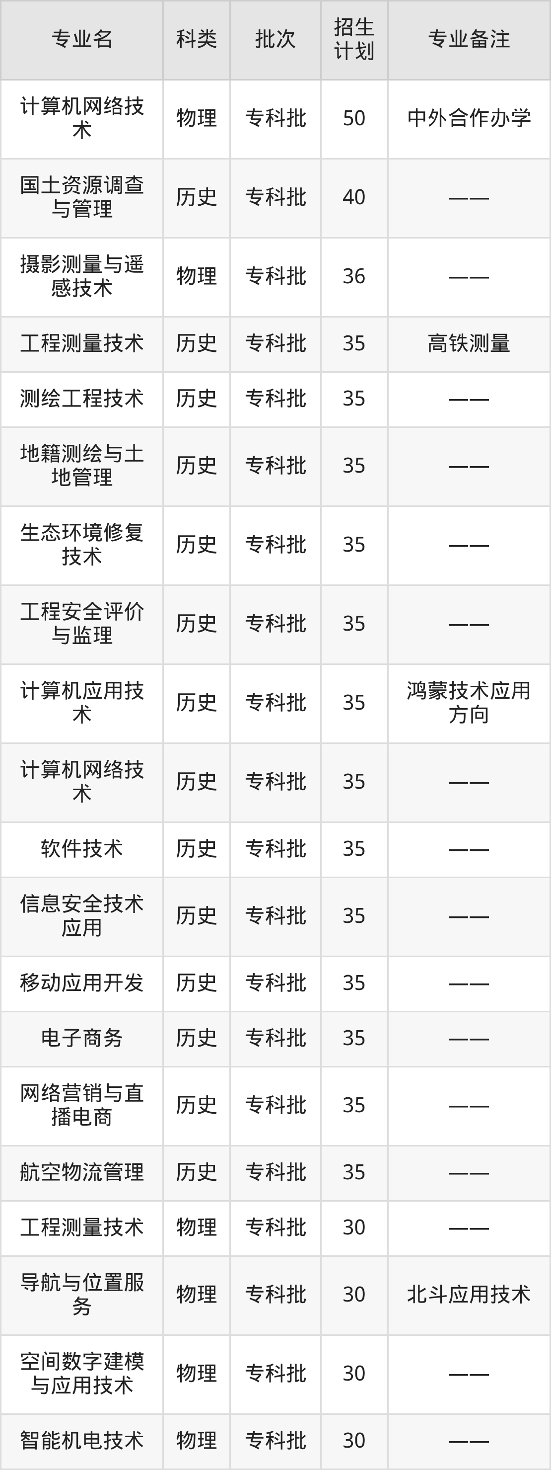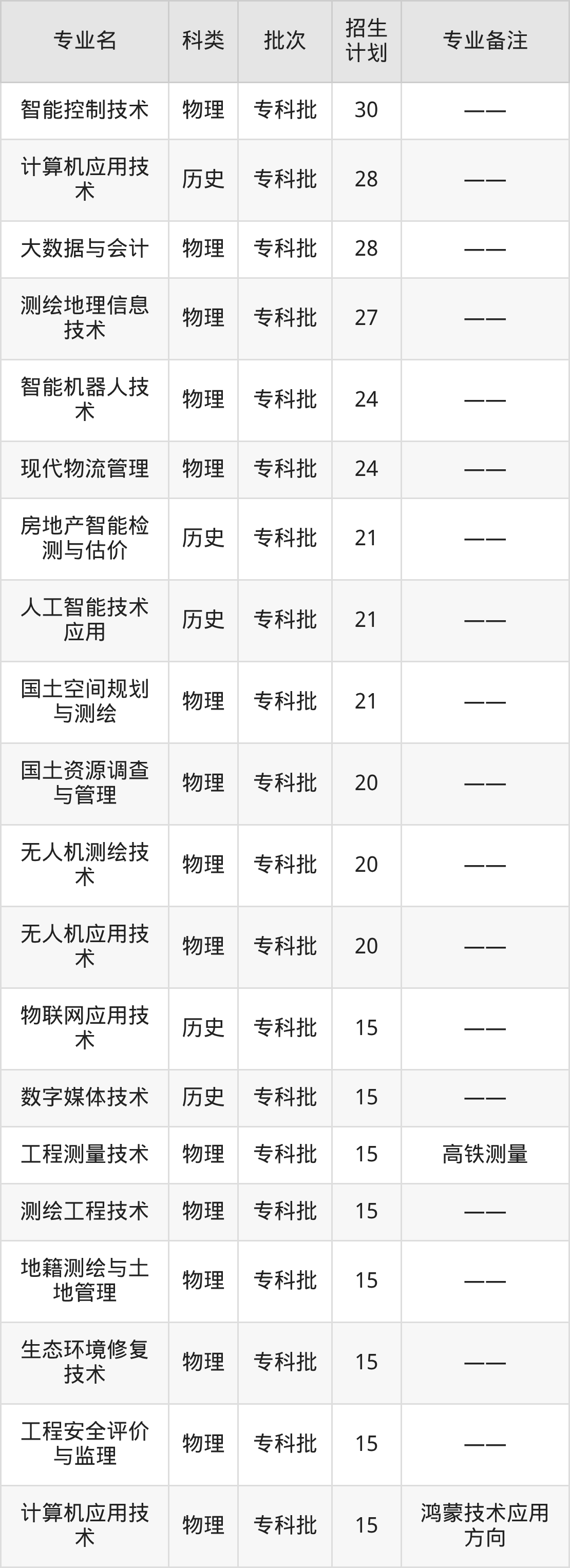 二、河南测绘职业学院2025招生计划表
