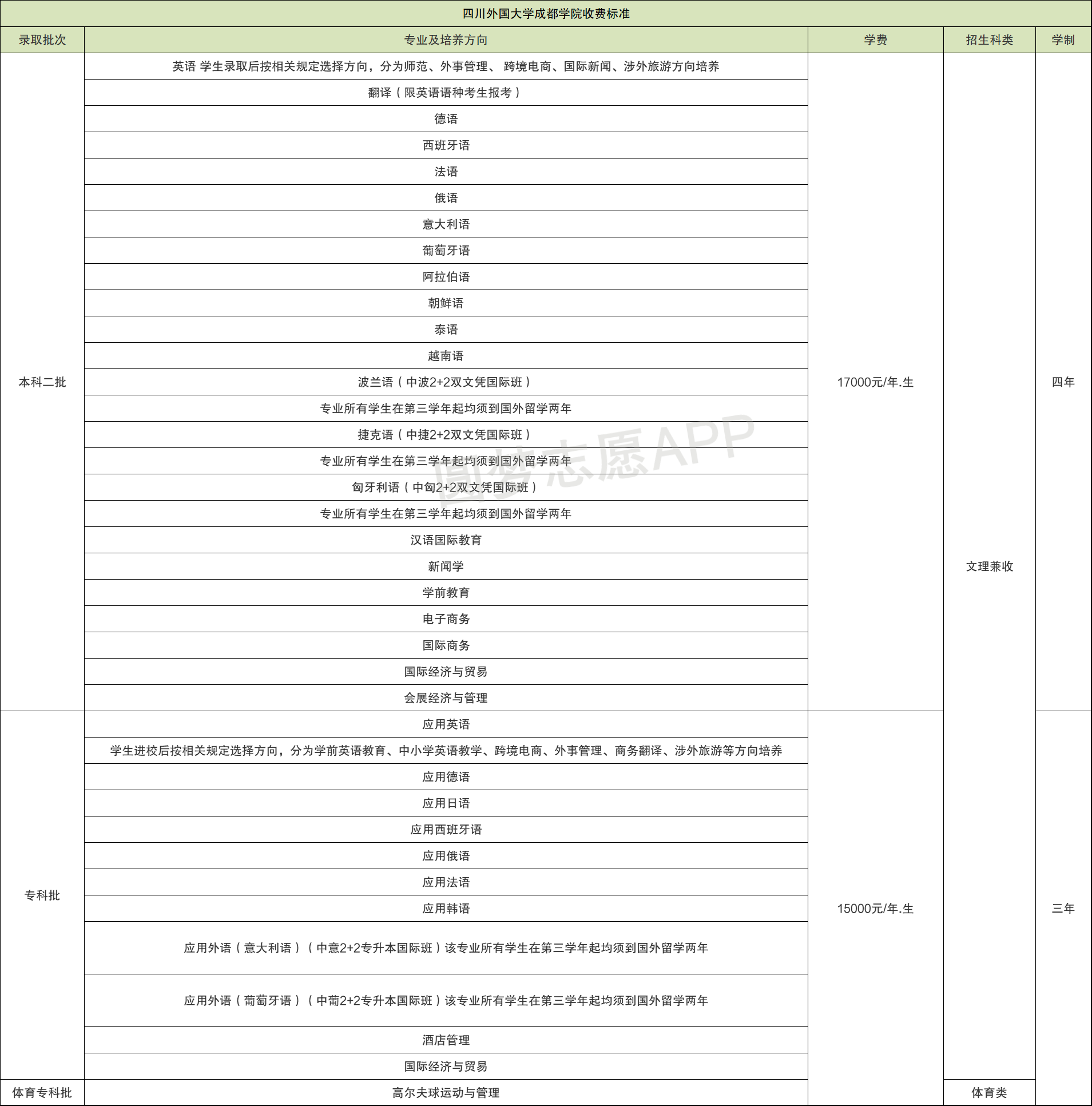 小编为大家总结出四川外国语大学成都学院分专业详细收费情况,供大家参考:
