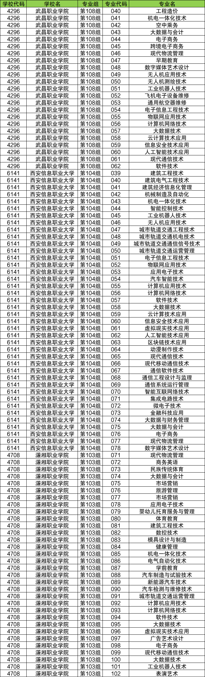 参考最新一年湖南省高考志愿填报招生计划表,这里将列举部分专科院校的物理类院校代码、专业组代码、专业代码,以供同学们参考(2025年请以正式发布的招生计划表代码为准):